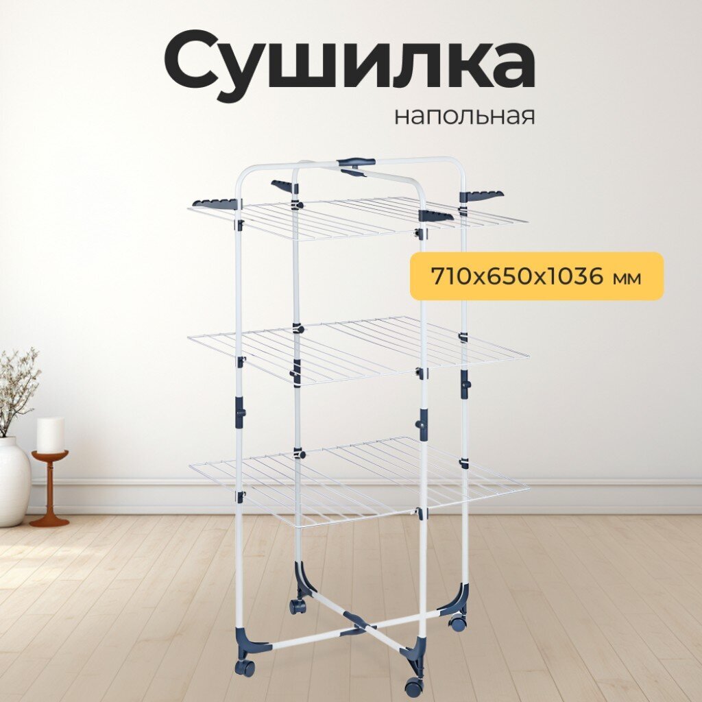 Сушилка для белья напольная 25 м, 3 уровня, складная — идеальное решение для быстрой сушки до 20 кг белья дома или на даче. Компактно складывается, легко перемещается.