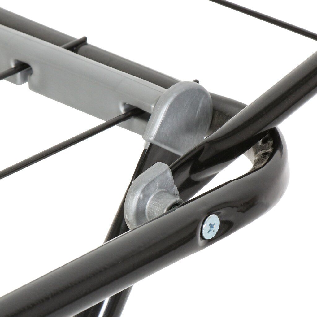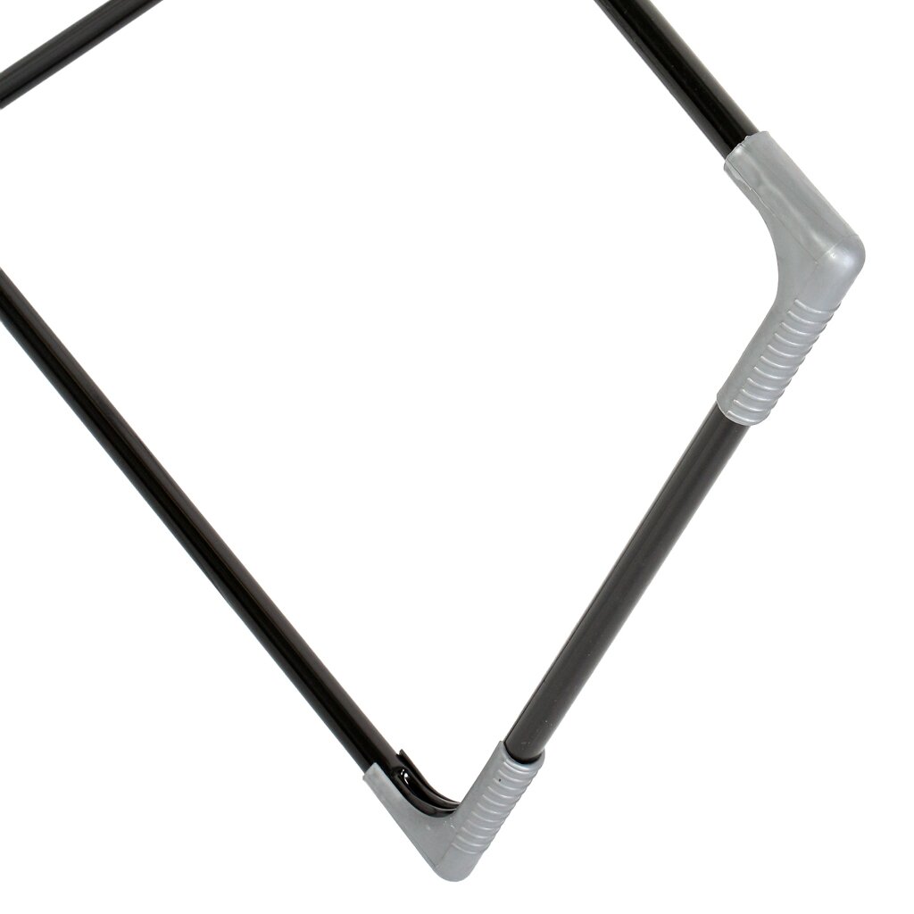 Размеры: 180х55х96 см. Материал основания и перекладин — сталь. Цвет — черный. Конструкция складная, без механизма «гармошка».