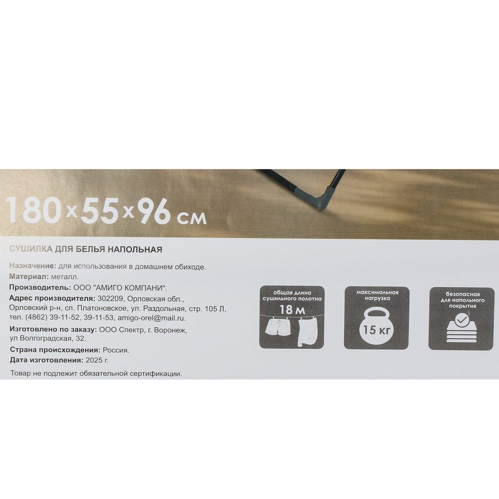 Вы можете приобрести «Сушилка для белья напольная, полотно 18 м, 180х55х96 см, складная, 18 прутьев, 15 кг, стальная, черная, Aqwin» и другие товары в нашем интернет-магазине в Серпухове по низким ценам и с бесплатным самовывозом.