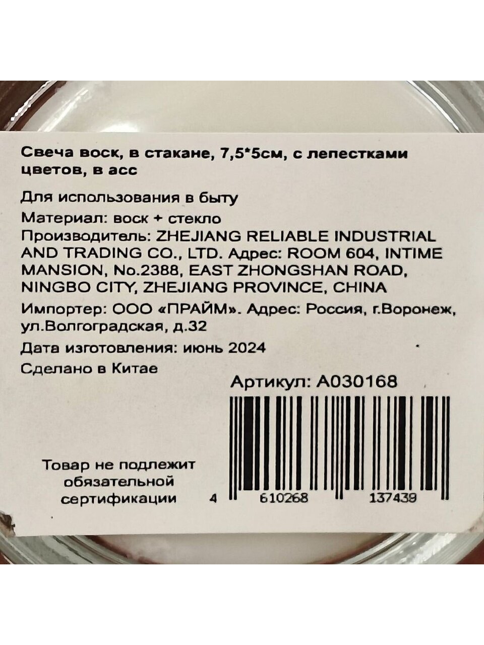 Какой состав у декоративной свечи в стакане?
