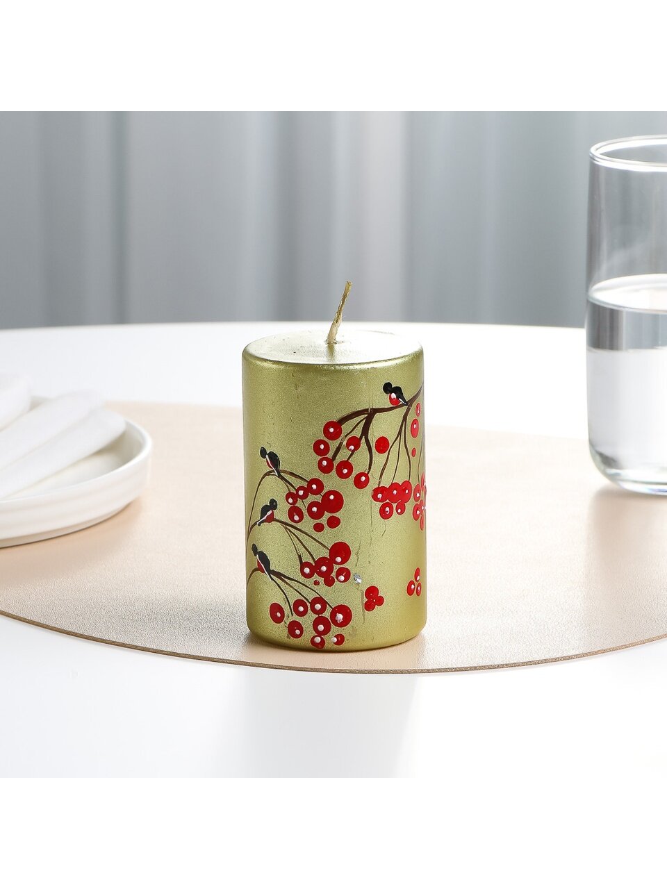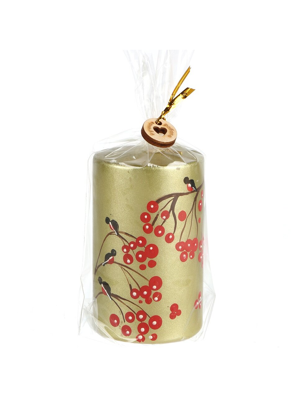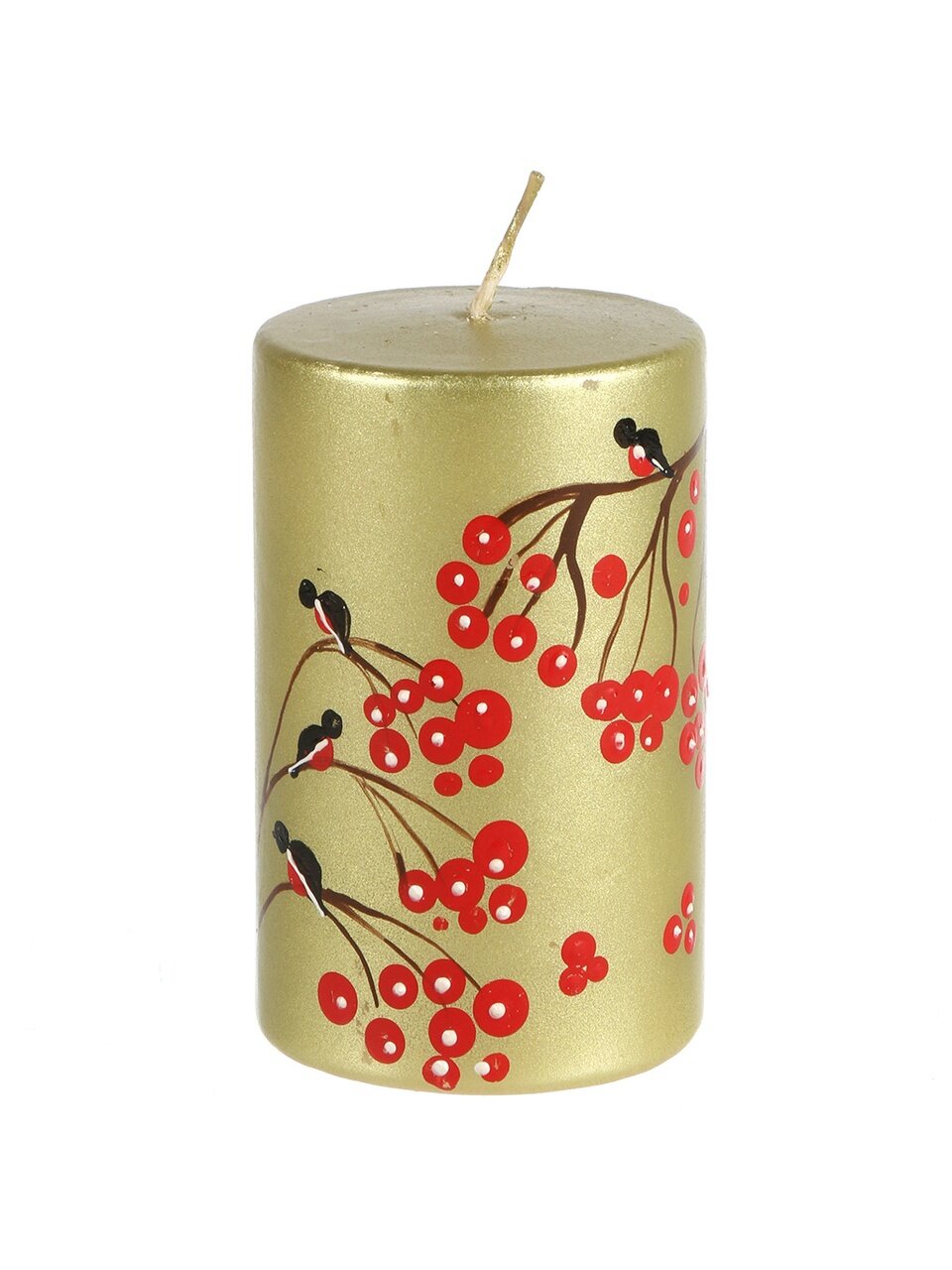 Декоративная свеча «Снегири на рябине» 10×6 см — ручная роспись, 30 часов горения, атмосферный подарок для зимних праздников и уютных вечеров.