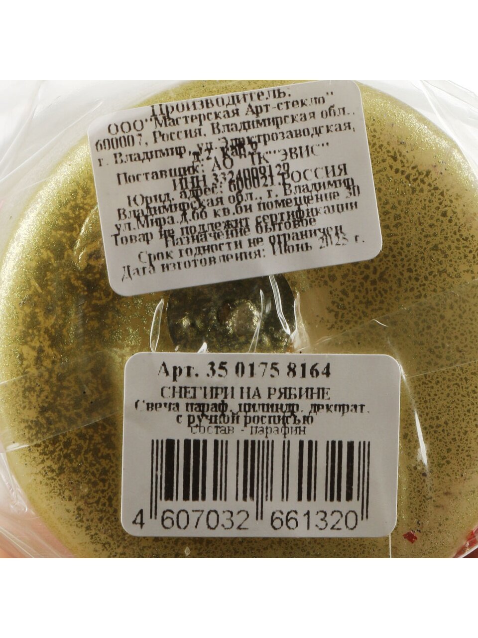 Добавьте в корзину декоративную свечу «Снегири на рябине» по выгодной цене — создайте атмосферу уюта и порадуйте близких эксклюзивным подарком, который прослужит до 30 часов!