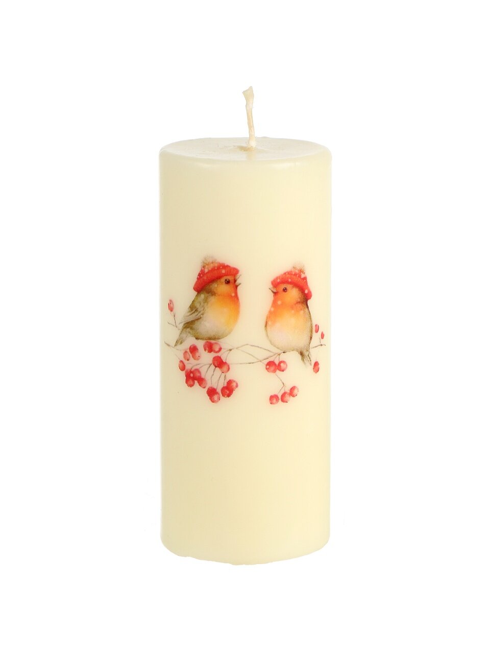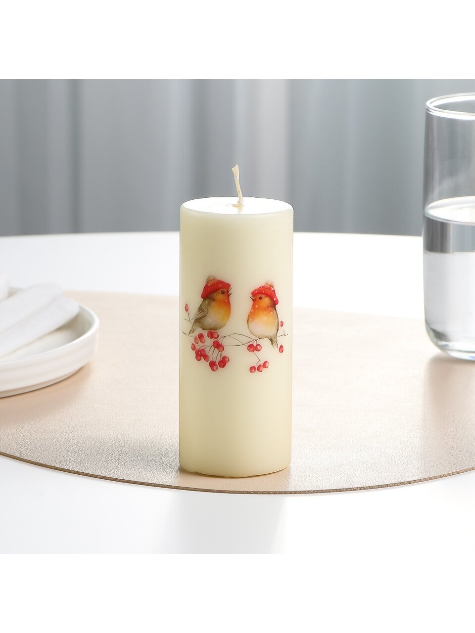 Свеча-цилиндр «Пташки на Ветке», 12 см — стильный акцент для уюта дома или оригинальный подарок с безопасным парафином и декором ручной работы.