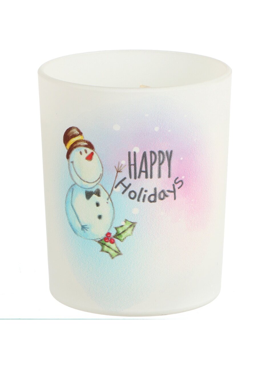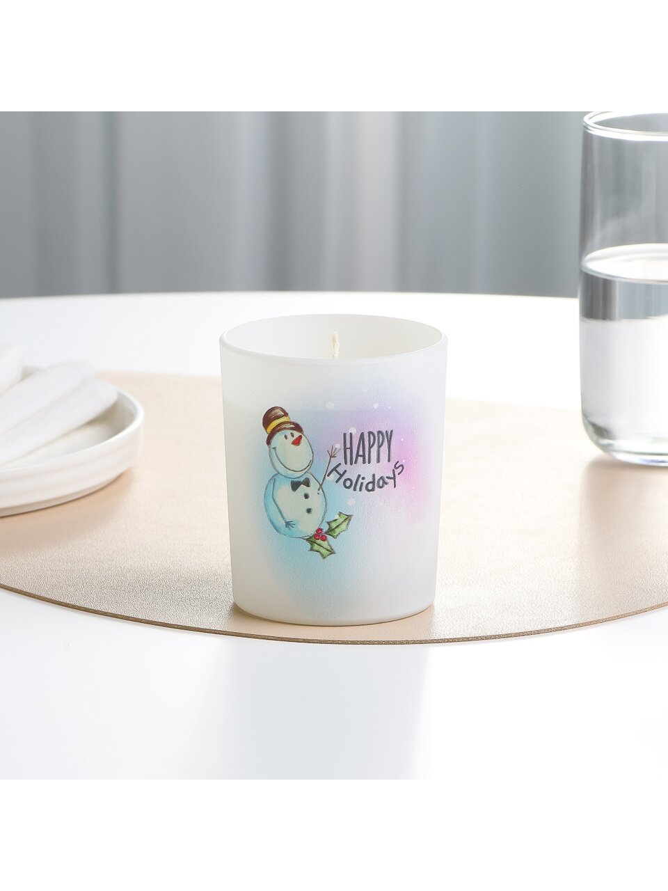 Свеча декоративная HAPPY HOLIDAYS в стеклянном подсвечнике 7.7х9.3 см — стильный акцент для уюта и подарков, безопасна, без запаха, подходит для любого интерьера.