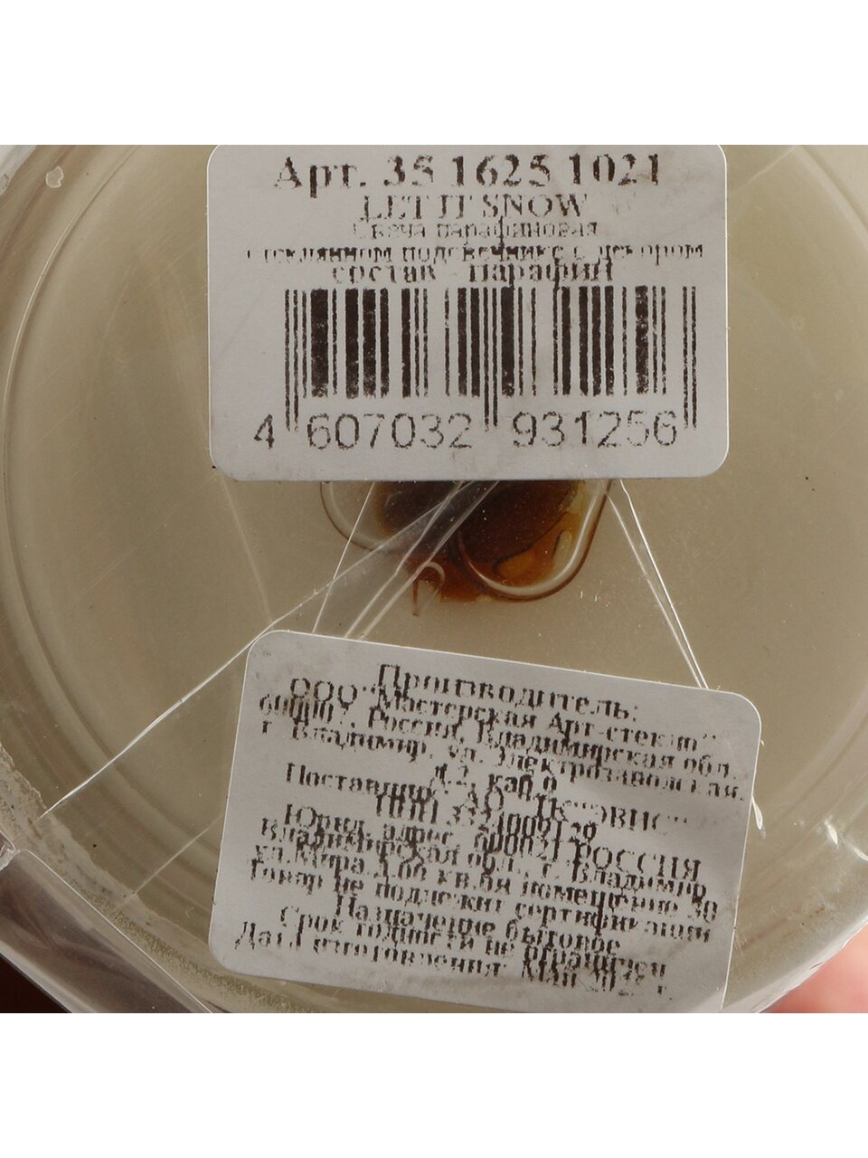 Высота — 9.3 см, диаметр — 7.7 см, материал — парафин, форма — в стакане, цвет — белый, страна продавца — Россия, артикул 35 1625 1021.