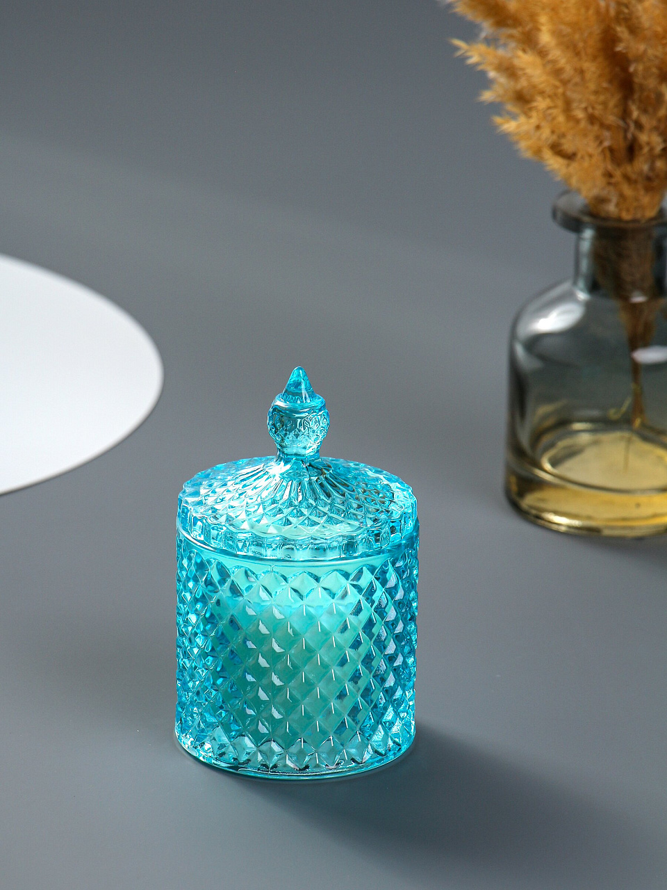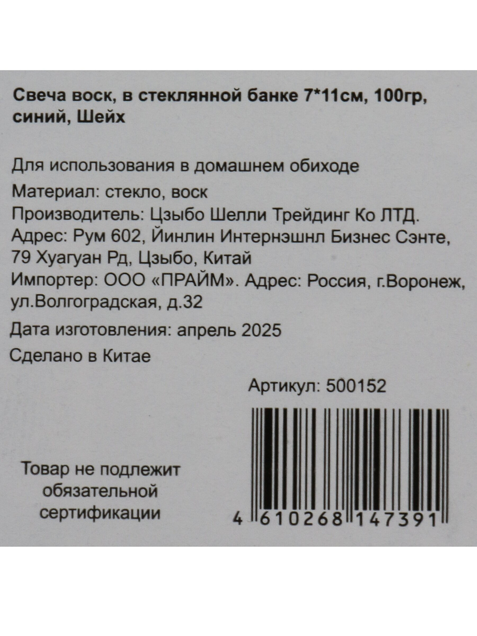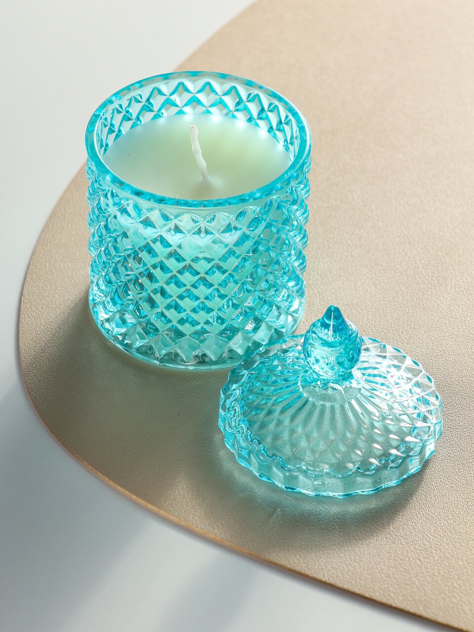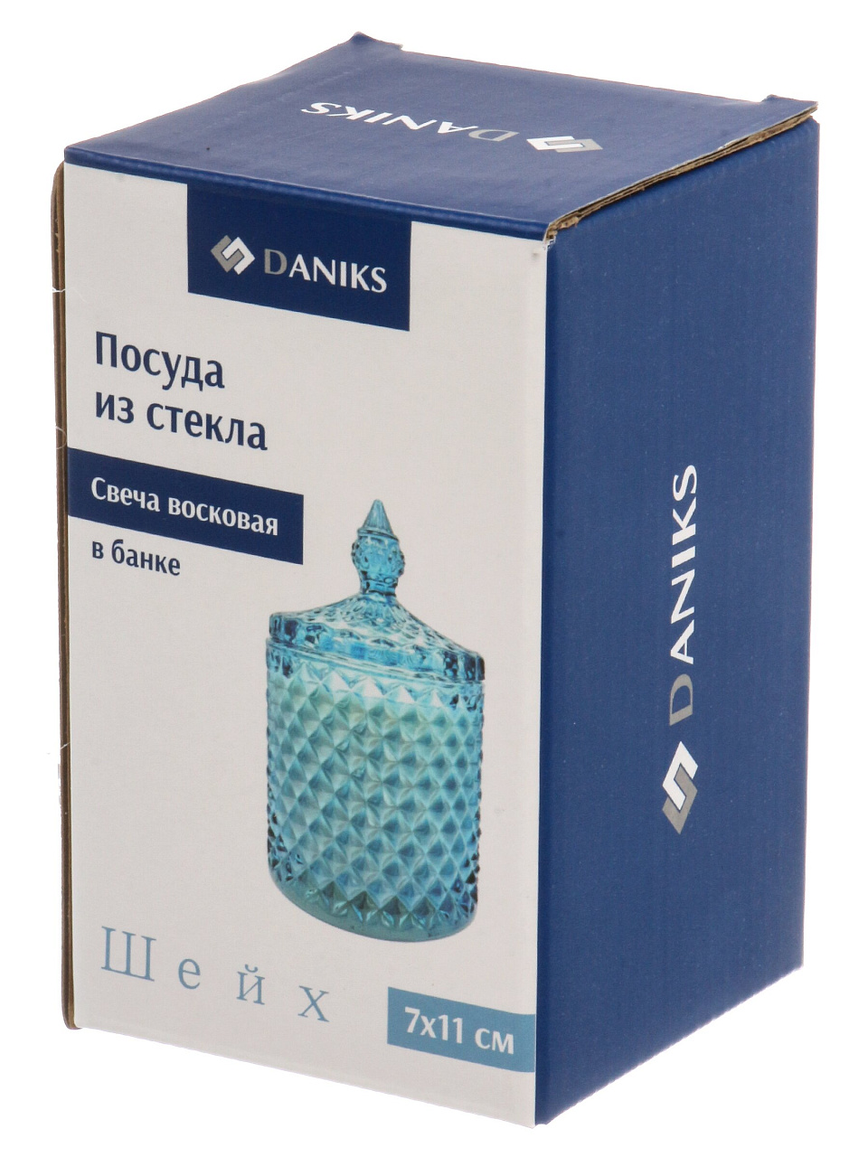 Свеча воск, в стеклянной банке, 7х11 см, 100гр, синяя, Шейх