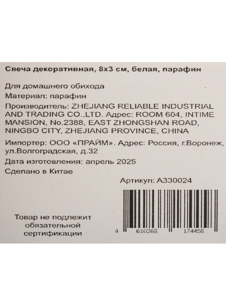 Закажите белую декоративную свечу 8х3 см — выгодное решение для декора, подарка или уюта в доме. Гарантируем качество, быструю доставку и отличную цену!