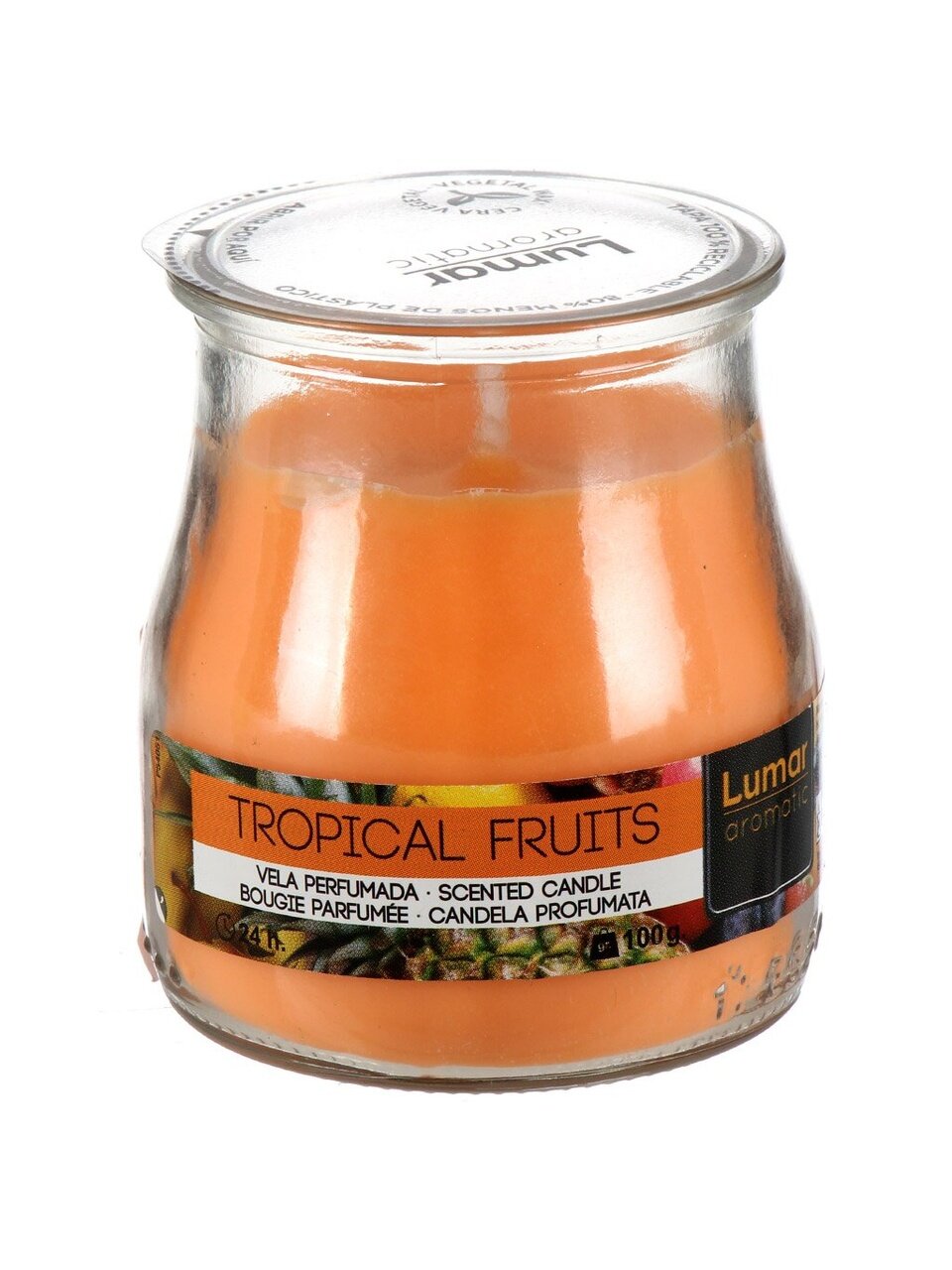 Какой аромат у свечи Lumar Fruta Tropical и сколько она горит?