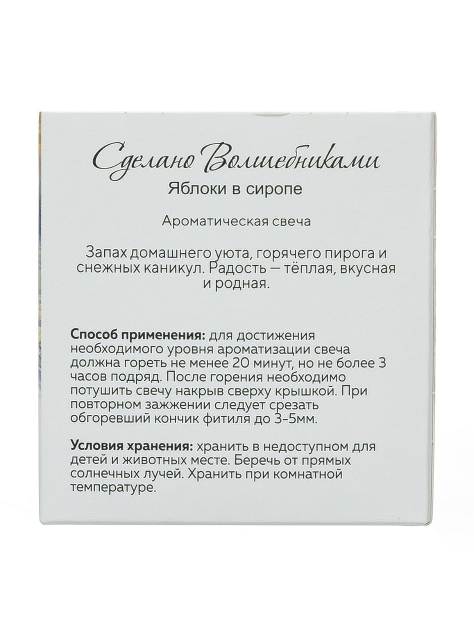 - Уникальный аромат: тёплый запах яблок в сиропе мгновенно наполняет комнату атмосферой уюта и Нового года
