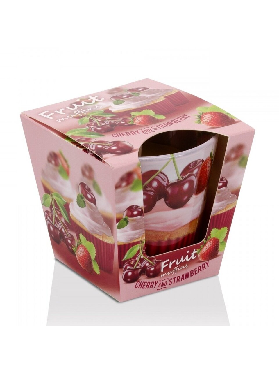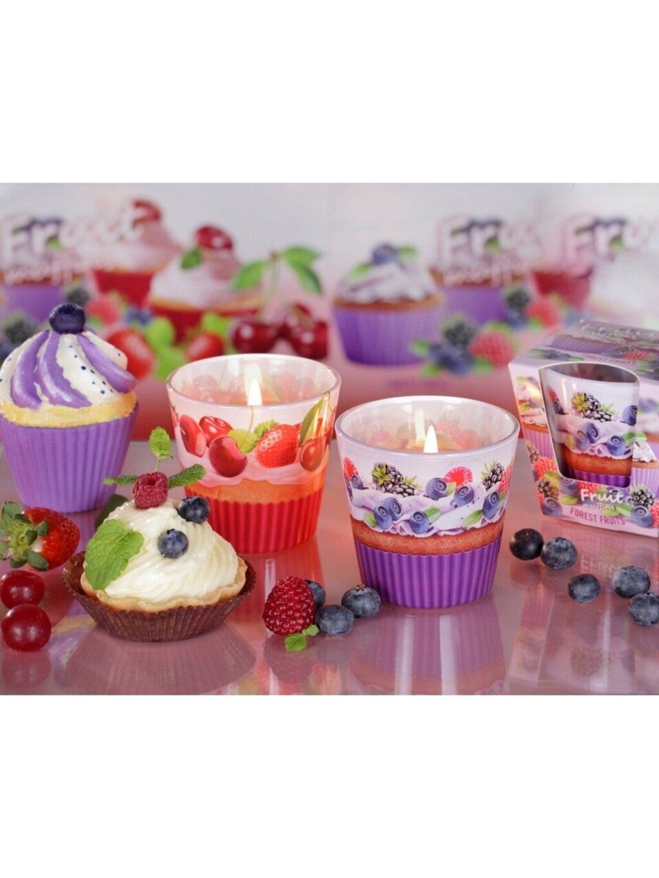 Свеча ароматизированная Bartek Candles «Фруктовые маффины», 8×7,5 см — атмосферный подарок и уют для дома, до 30 часов аромата, стильный стакан, выбор для праздника.