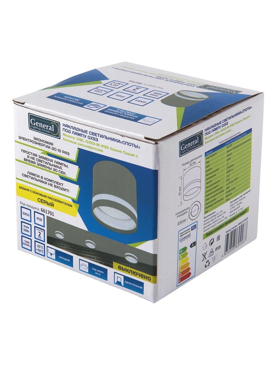 Вы можете приобрести «Светильник под лампу General Lighting Systems, Башня, 50 Вт, GX53, на 1 лампочку, IP20, 8.2х8.2х10 см, боковой рассеиватель, Спот, графит, 661701» и другие товары в нашем интернет-магазине в Санкт-Петербургe по низким ценам и с бесплатным самовывозом.