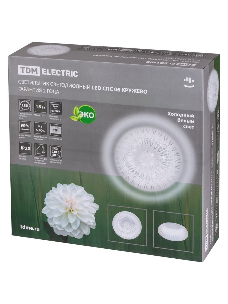 Вы можете приобрести «Светильник светодиодный, TDM Electric, СПС 06 Кружево, 15 Вт, 4000 К, 810 Лм, IP20, 30х30х10 см, белый, SQ0329-0188» и другие товары в нашем интернет-магазине в Серпухове по низким ценам и с бесплатным самовывозом.