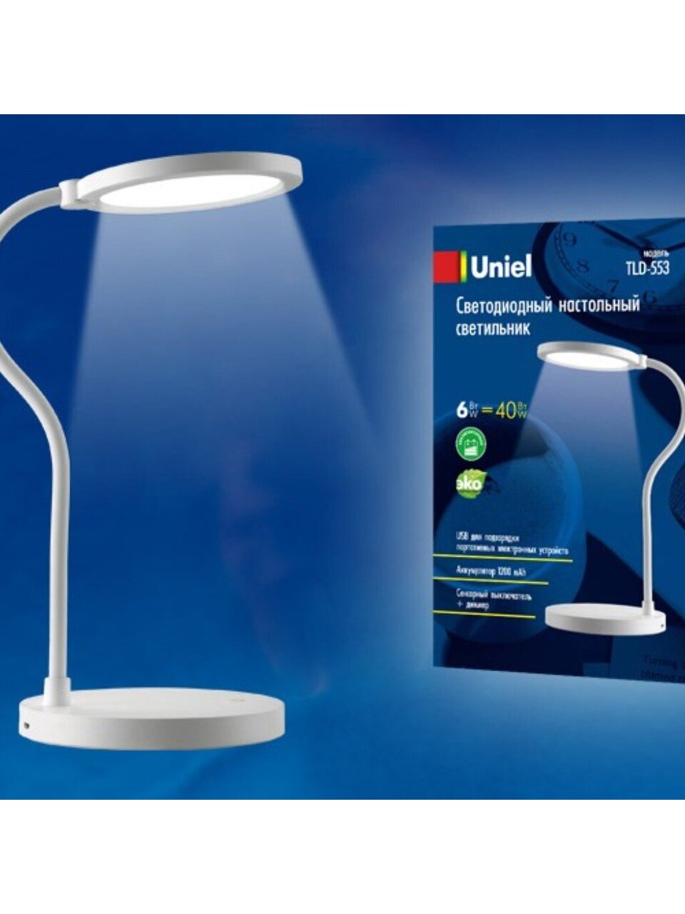 Светильник настольный сенсорное включение, 6 Вт, белый, абажур белый, Uniel, TLD-553 White, UL-00003338