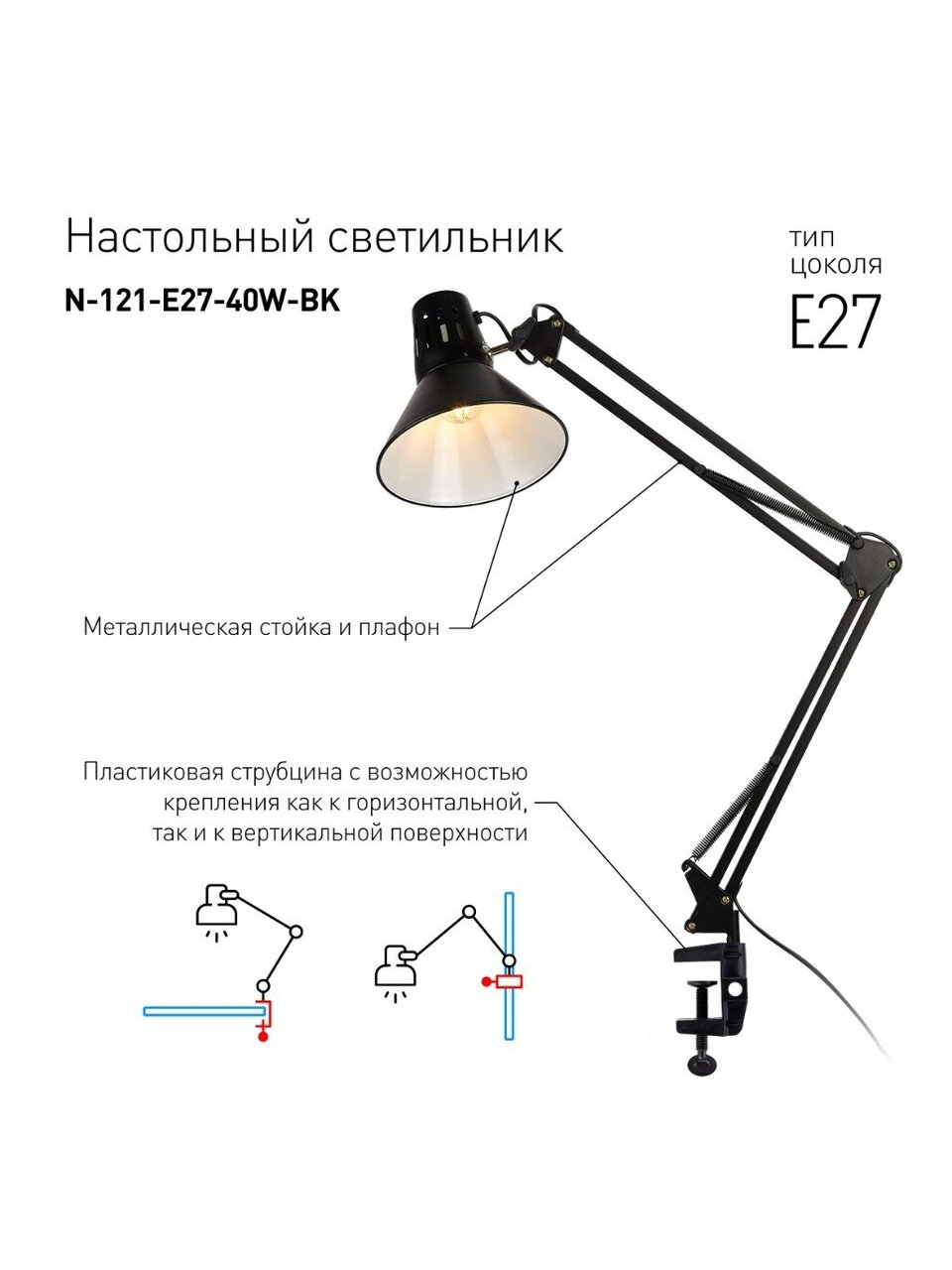 Вы можете приобрести «Светильник настольный на струбцине, E27, 40 Вт, черный, Эра, N-121-E27-40W-BK, 18х72, C0041454» и другие товары в нашем интернет-магазине в Старом Осколе по низким ценам и с бесплатным самовывозом.