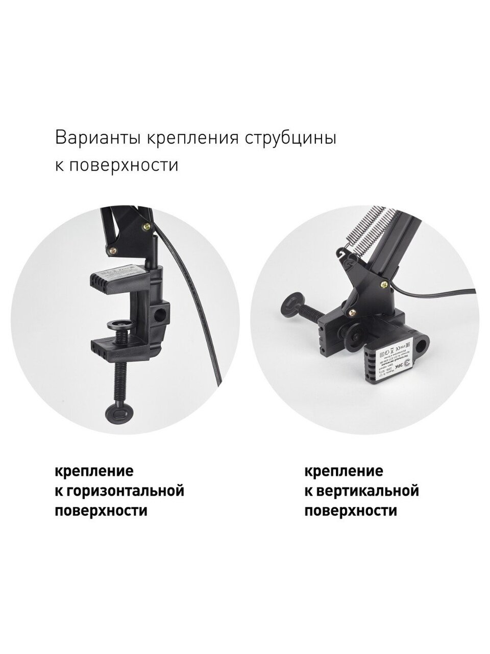 - Надежная пластиковая струбцина для крепления к краю поверхности;