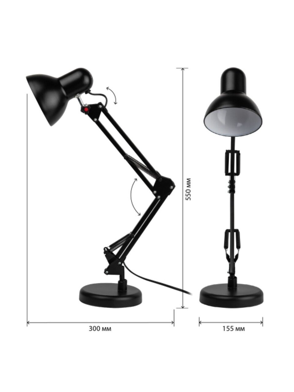 Настольный светильник ЭРА N-214-E27-40W-BK классического дизайна может использоваться с разными источниками света - лампой накаливания, компактной люминесцентной лампой (КЛЛ) или светодиодной (LED) лампой. Выключатель на проводе. Крепится на струбцину. Высота плафона регулируется двухсекционной сгибающейся стойкой, направление света - поворотом и наклоном плафона в любом направлении.