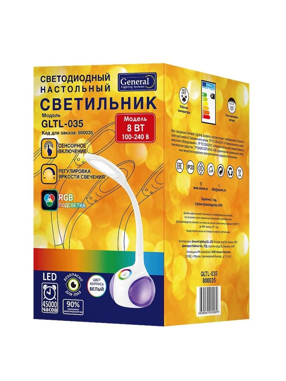 Вы можете приобрести «Светильник настольный 490 Лм, сенсорное включене,3 уровня яркости,нейтральный белый свет, 8 Вт, белый, абажур белый, General Lighting Systems, GLTL-035, 800035» и другие товары в нашем интернет-магазине в Санкт-Петербургe по низким ценам и с бесплатным самовывозом.