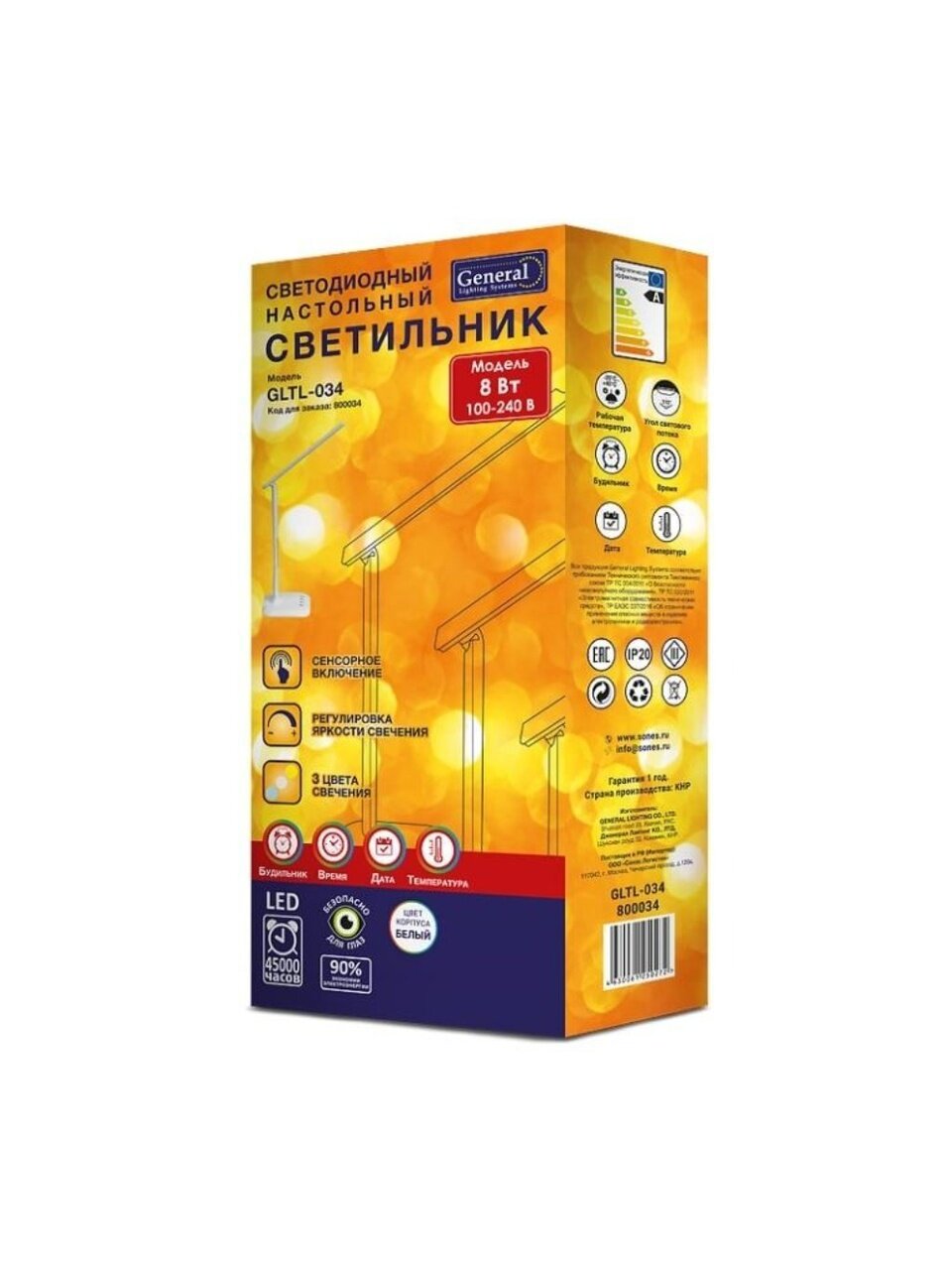Вы можете приобрести «Светильник настольный 610 Лм, с дисплеем с часами, сенсорное включение, 3 цвета свечения, 8 Вт, белый, абажур белый, General Lighting Systems, GLTL-034, 800034» и другие товары в нашем интернет-магазине в Серпухове по низким ценам и с бесплатным самовывозом.