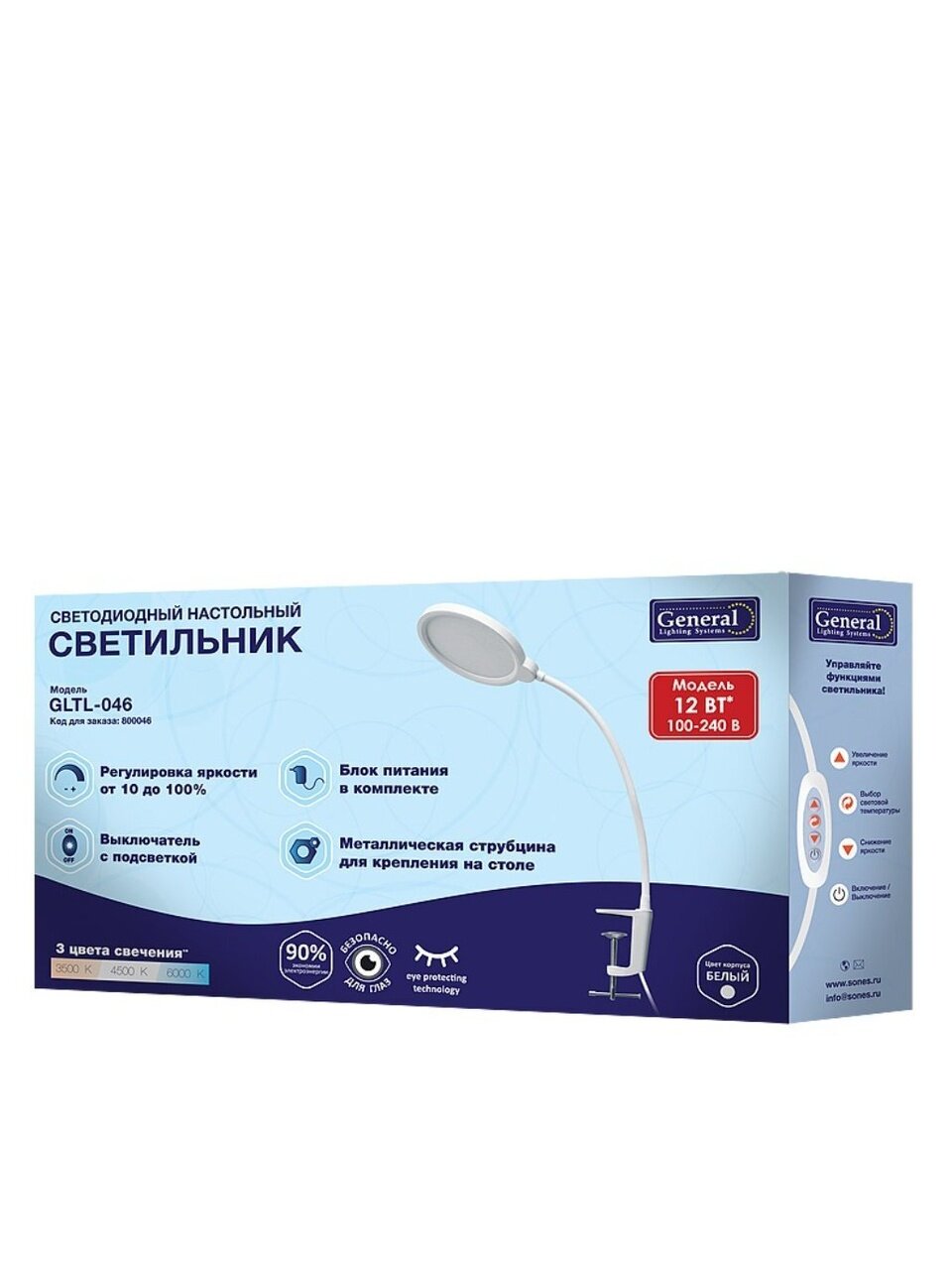 Вы можете приобрести «Светильник настольный 550 Лм, белый, на струбцине, сенсорное включение, 3 цвета свечения, 12 Вт, белый, General Lighting Systems, GLTL-046, 800046» и другие товары в нашем интернет-магазине в Санкт-Петербургe по низким ценам и с бесплатным самовывозом.