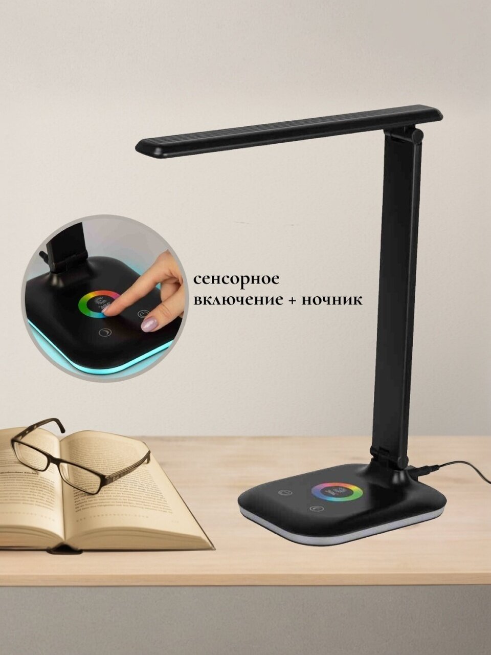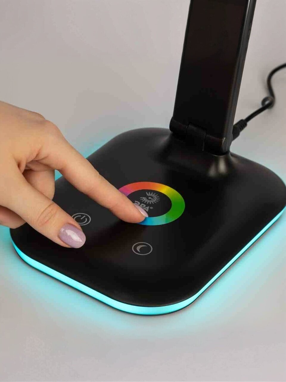 Настольный светильник ЭРА оснащен сенсорным управлением, возможностью выбора цветовой температуры и плавным диммером для регулировки яркости. В основание светильника встроен светодионый ночник с независимым выключателем и выбором режима работы.