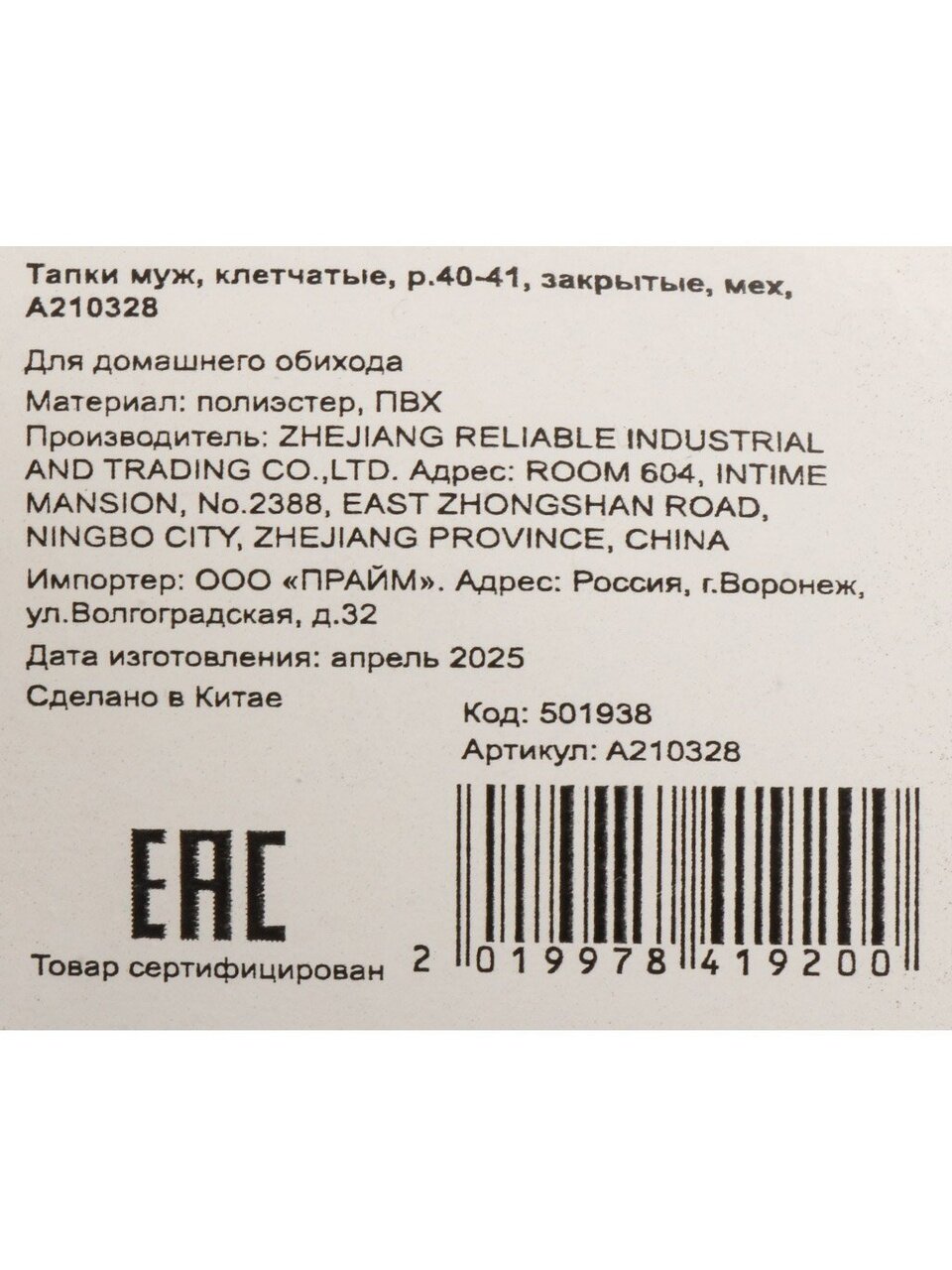 Покупка мужских тапок клетчатых р.40-41, закрытых, мех, A210328 — это уверенность в тепле и комфорте на протяжении всей зимы. Надежные материалы и классический дизайн делают их отличным выбором для подарка или личного использования. Создайте атмосферу уюта и заботы о себе и близких, выбрав качественную домашнюю обувь, которая прослужит не один сезон.