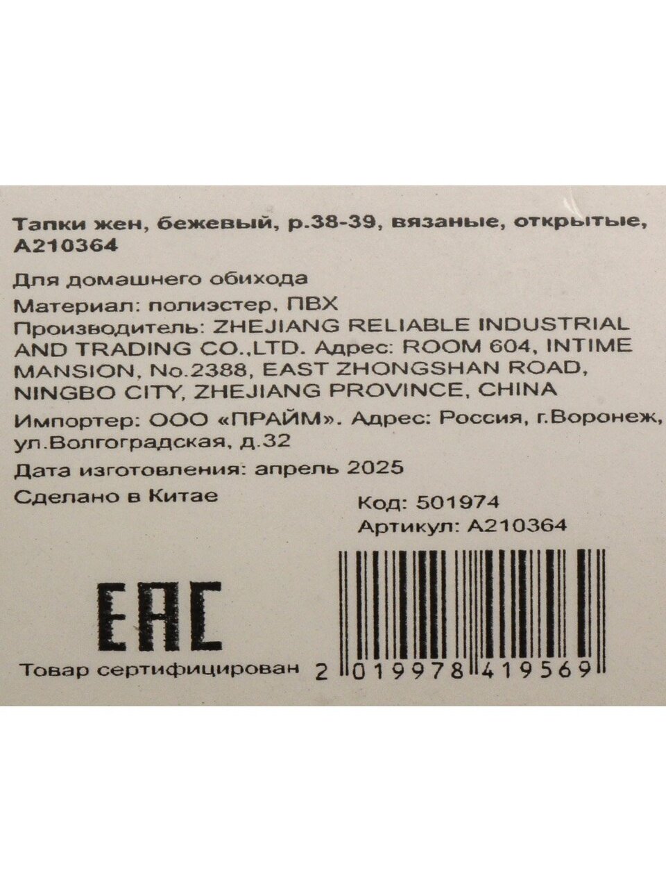 Вы можете приобрести «Тапки для женщин, бежевые, р. 38-39, вязаные, открытые, A210364» и другие товары в нашем интернет-магазине в Обнинске по низким ценам и с бесплатным самовывозом.
