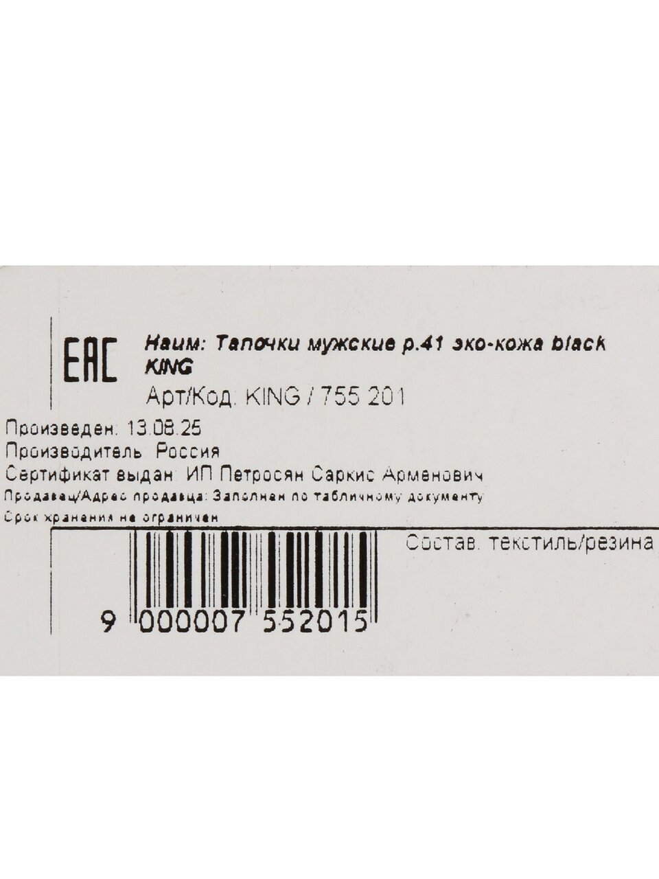 Мужские тапки KING из эко-кожи, открытые, чёрные, р.41 — комфорт и стиль для дома и дачи по выгодной цене. Долговечность, лёгкий уход, универсальный подарок.