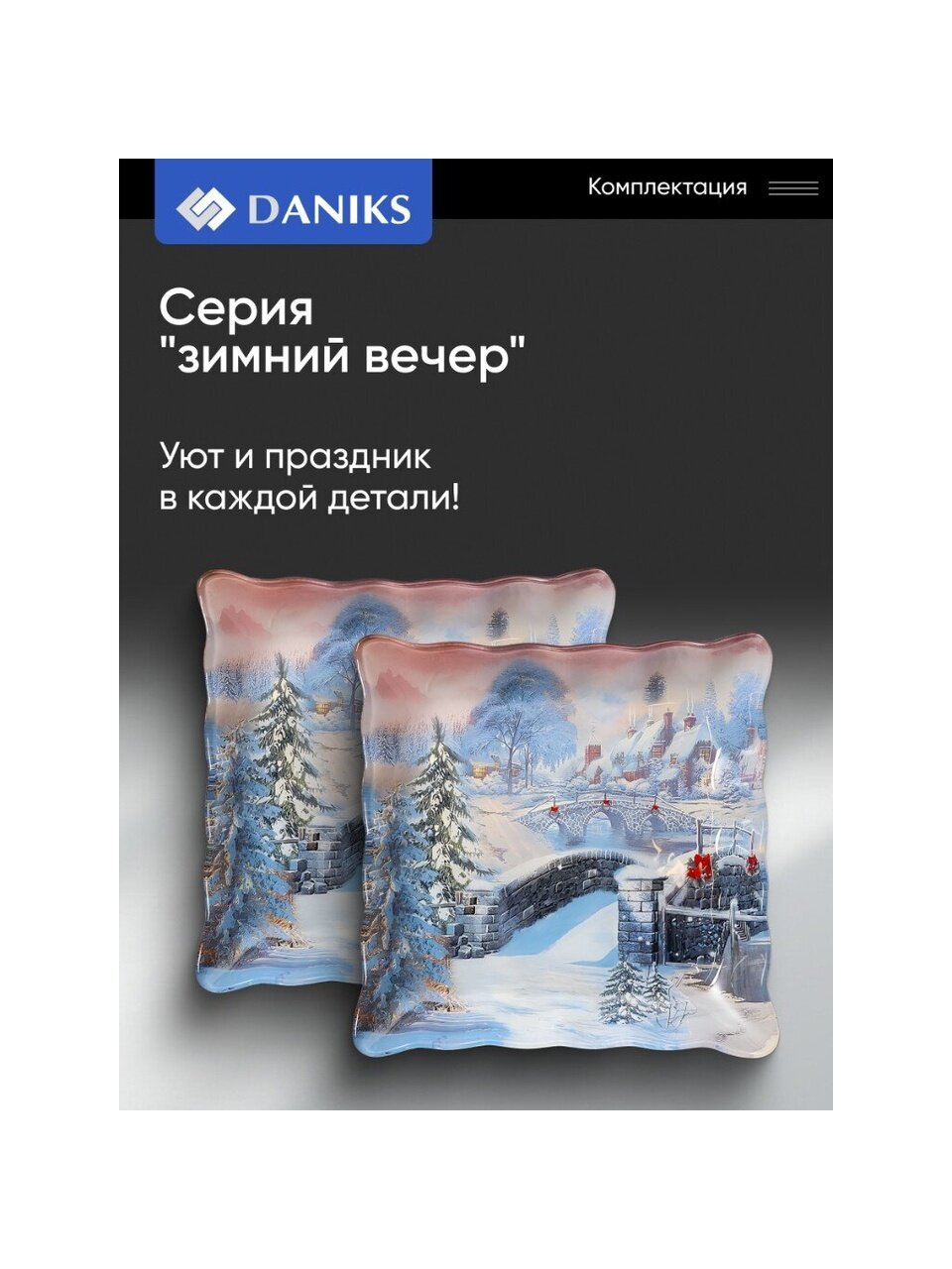 Тарелка десертная Daniks «Зимний вечер» 20х20 см — стильный акцент для праздничной сервировки: прочное стекло, рифленый дизайн, подходит для СВЧ и посудомоечной машины.