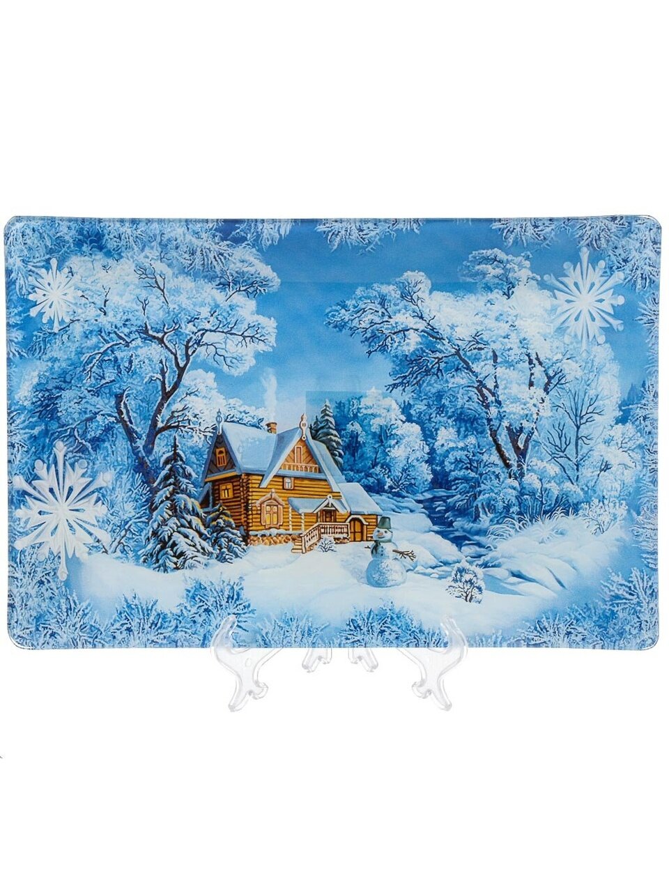 Тарелка десертная Daniks «Морозный день» 20х30 см — стильное стеклянное блюдо для эффектной подачи десертов и закусок на Новый год и каждый день.