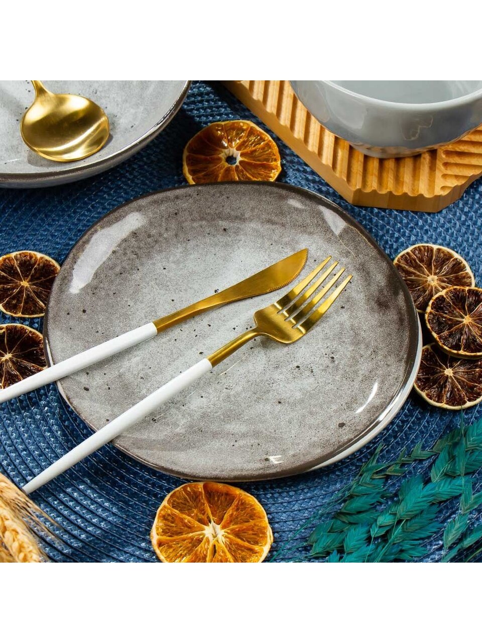 Тарелка десертная Domenik Stone Dark, 20 см — стильная керамика для сервировки и уютных моментов, устойчива к царапинам и подходит для СВЧ.