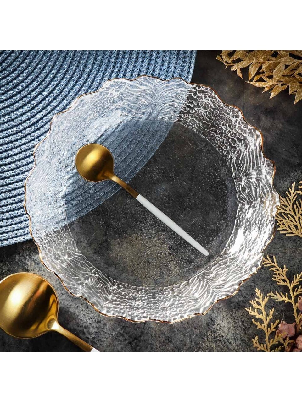 Тарелка стеклянная 19,5 см с золотой каймой Алмаз Y6-10094 — стильная сервировка для дома и подарка, безопасна для посудомоечной машины, не тускнеет со временем.