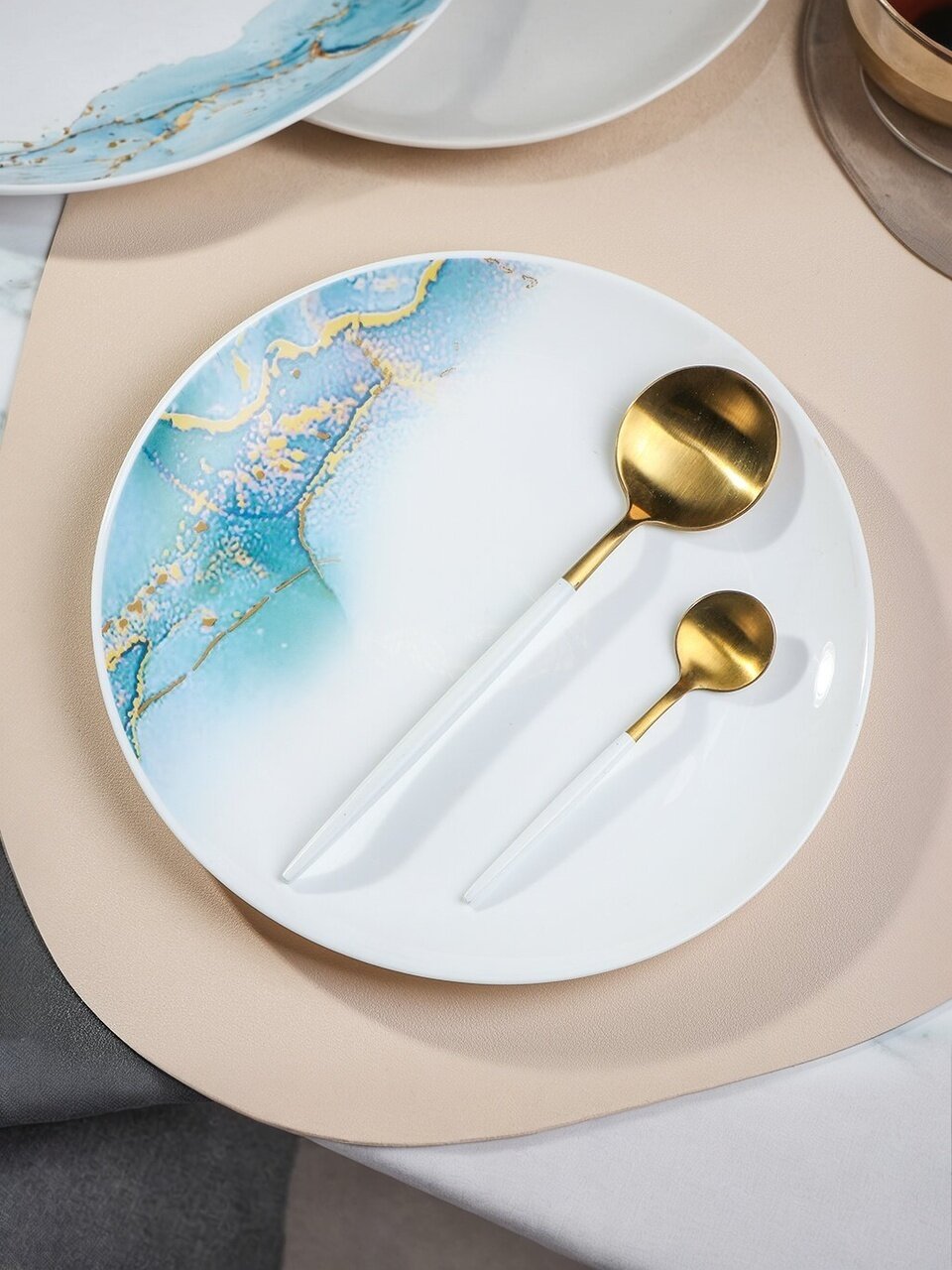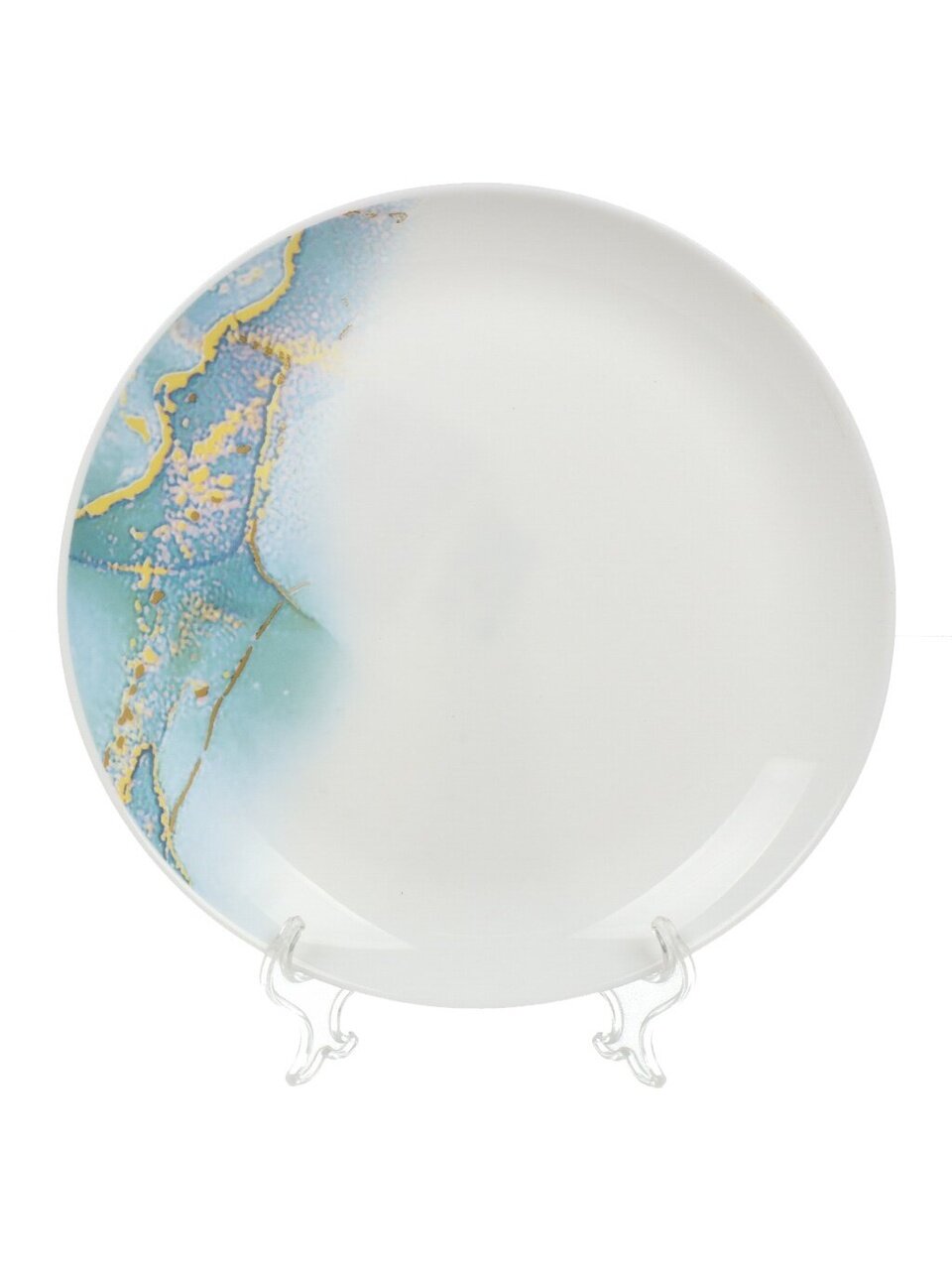 Тарелка обеденная Daniks Флюид 24 см: стильная стеклокерамика под мрамор, подходит для СВЧ и посудомоечной машины. Идеальный выбор для сервировки и подарка.