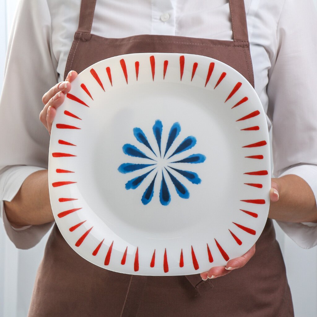 Тарелка Daniks Кассиопея 26 см из стеклокерамики: стильный квадратный дизайн с узором, прочная для ежедневного использования и сервировки на праздник.