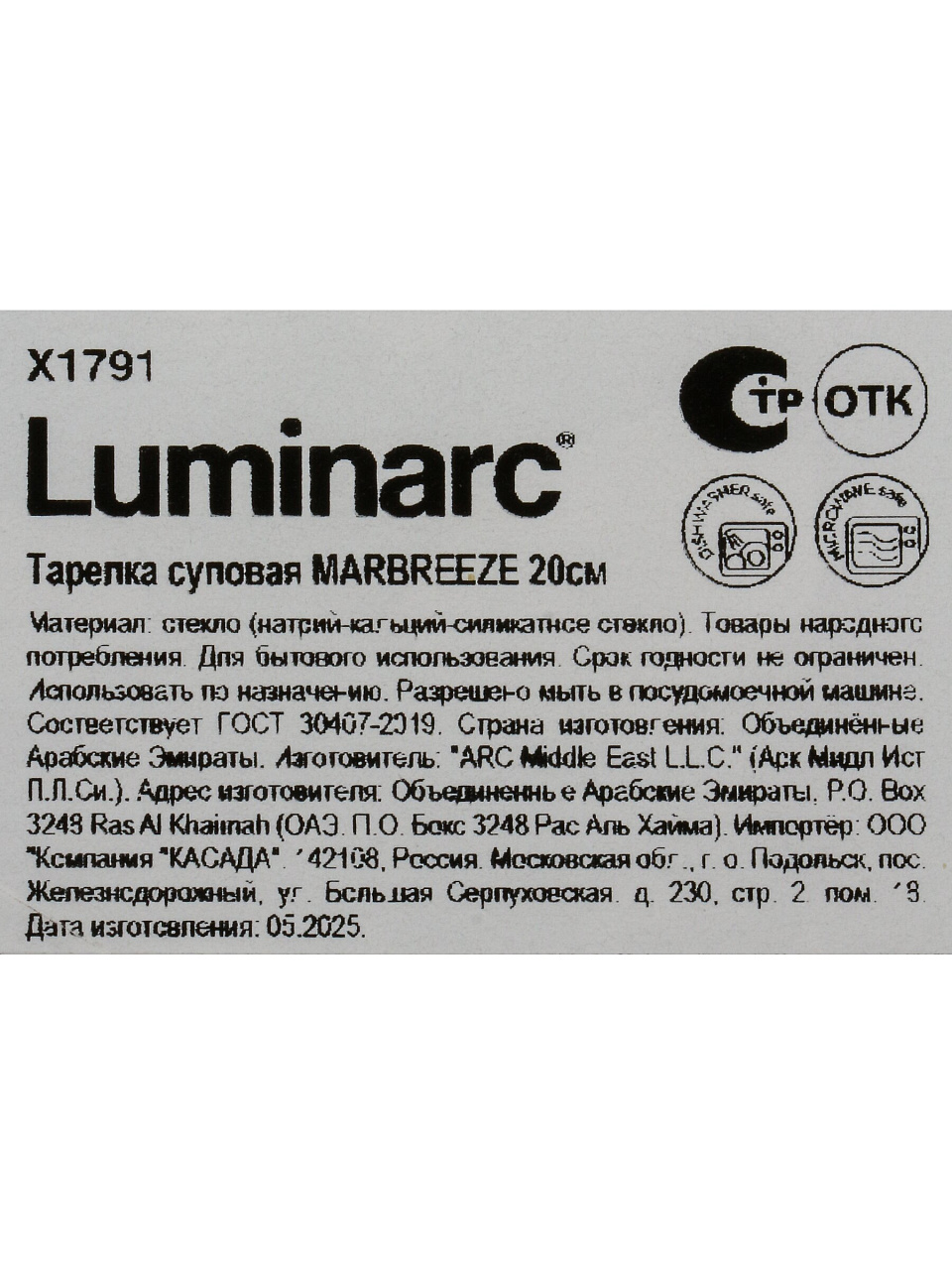 Тарелка суповая, стекло, 20 см, круглая, Marbreeze, Luminarc, X1791