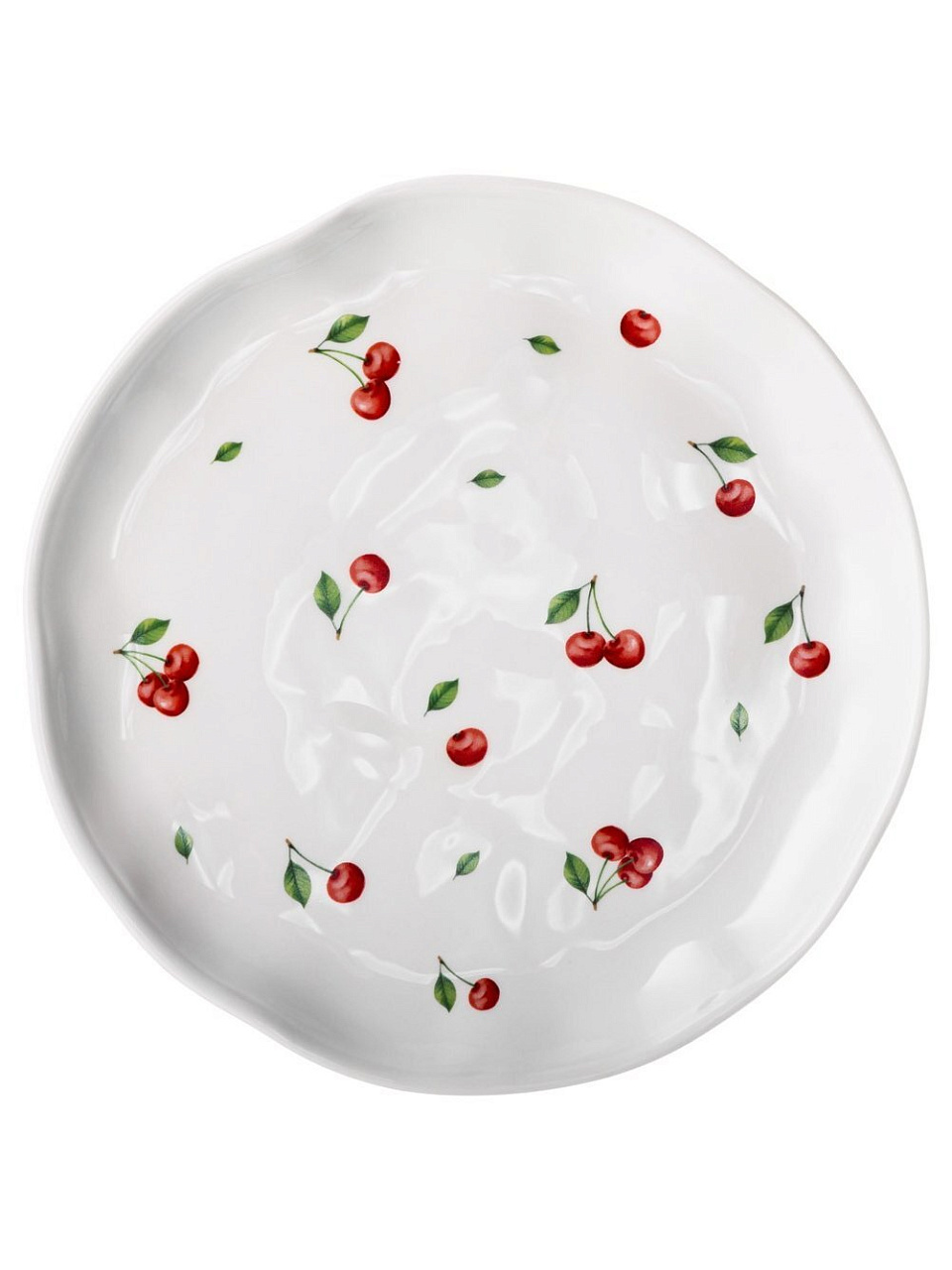 Набор закусочных тарелок Lefard Cherry — это удачное решение для сервировки стола, если вы ищете купить недорого закусочные тарелки для дачи или дома. Керамика с авторским рисунком устойчива к царапинам, а округлая форма и оптимальный размер (21,5 см) подходят для подачи закусок, фруктов, десертов. Как выбрать размер закусочной тарелки? Для большинства блюд универсальным считается диаметр 21–22 см — именно такой в этом наборе.