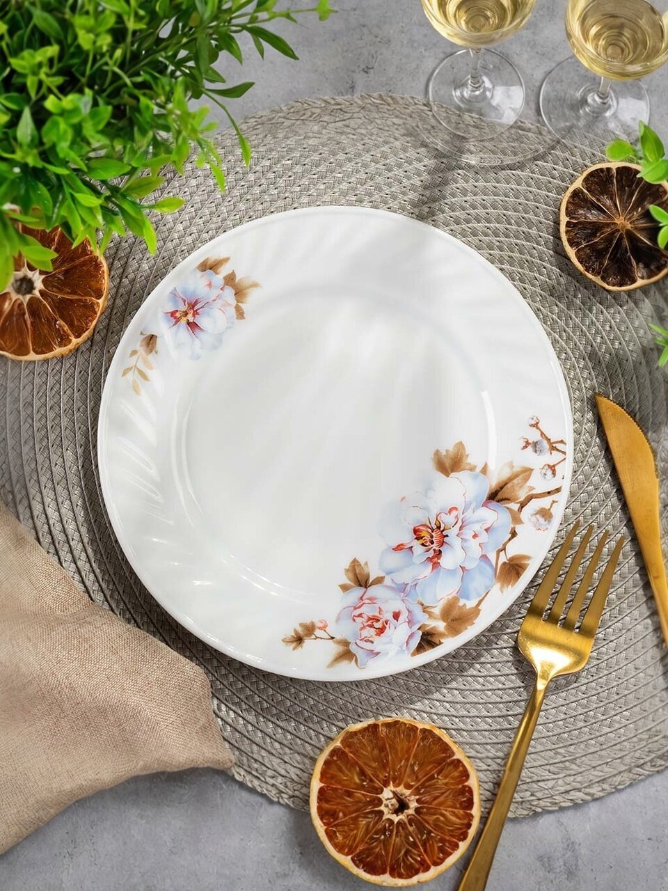 Круглая десертная тарелка Daniks Орлеан 18 см: стильная стеклокерамика с цветочным рисунком для сервировки дома и дачи, подходит для СВЧ и посудомоечной машины.