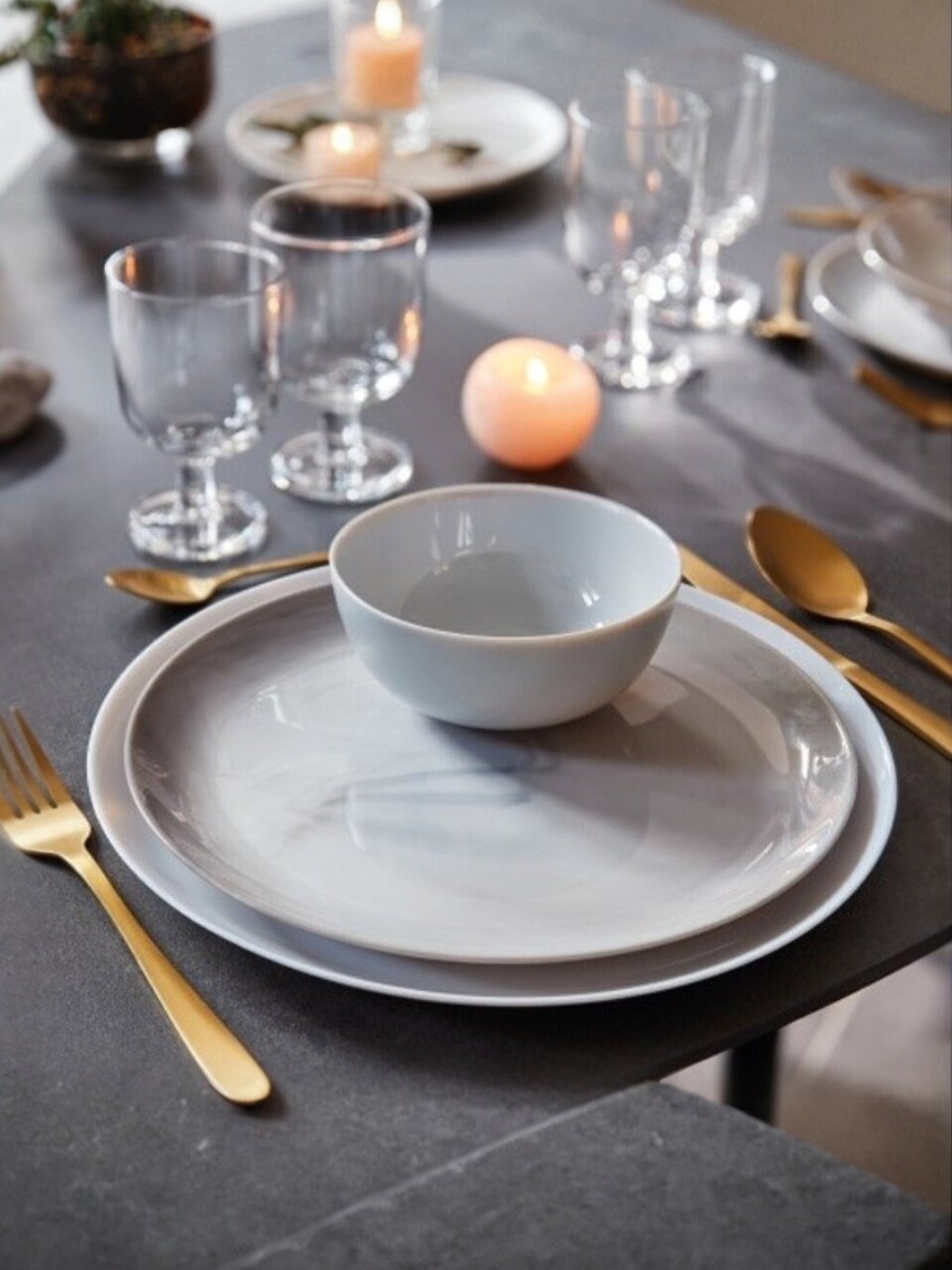 - Уникальный дизайн под мрамор — современный акцент на любом столе, легко сочетается с посудой разных коллекций