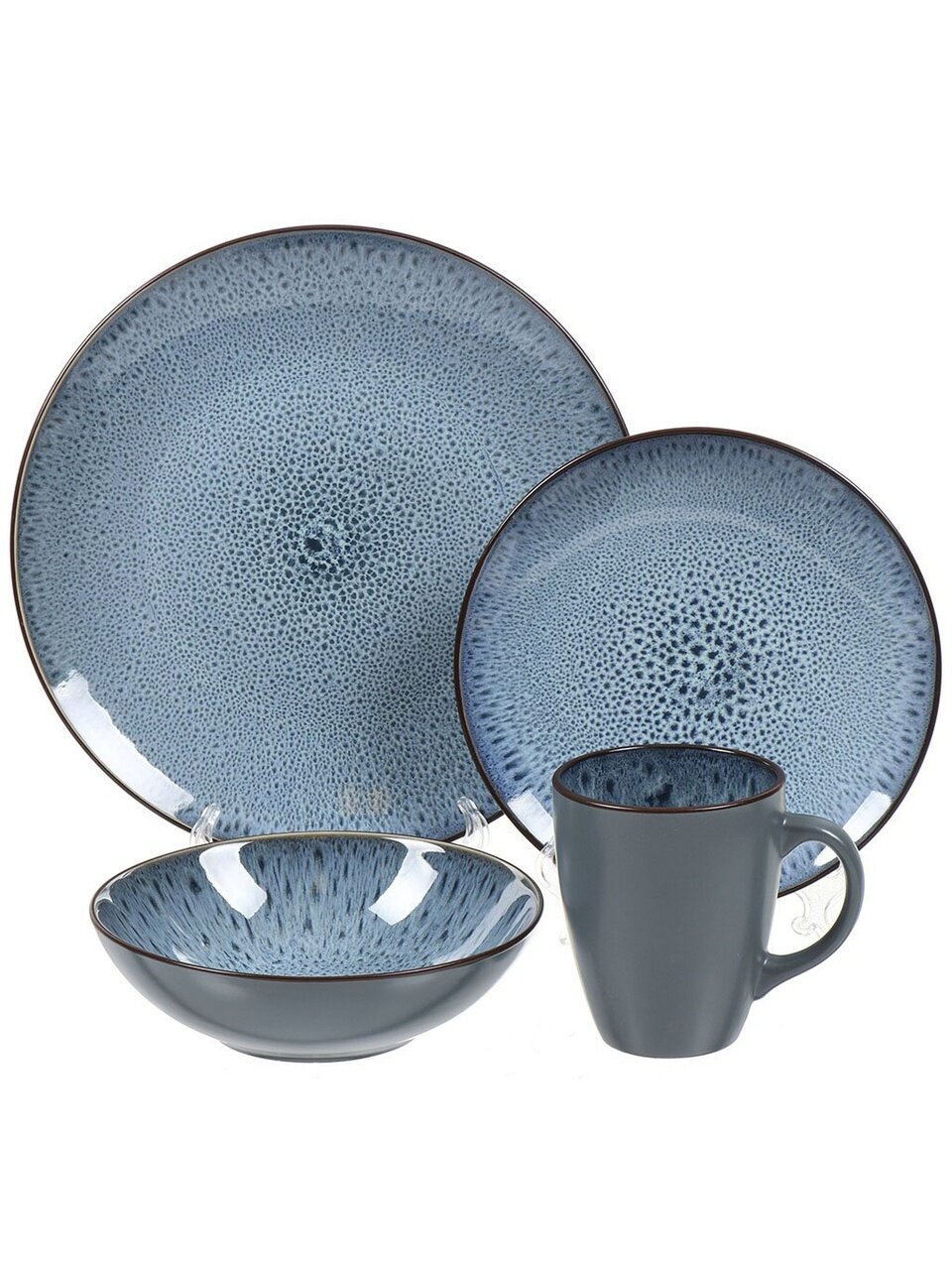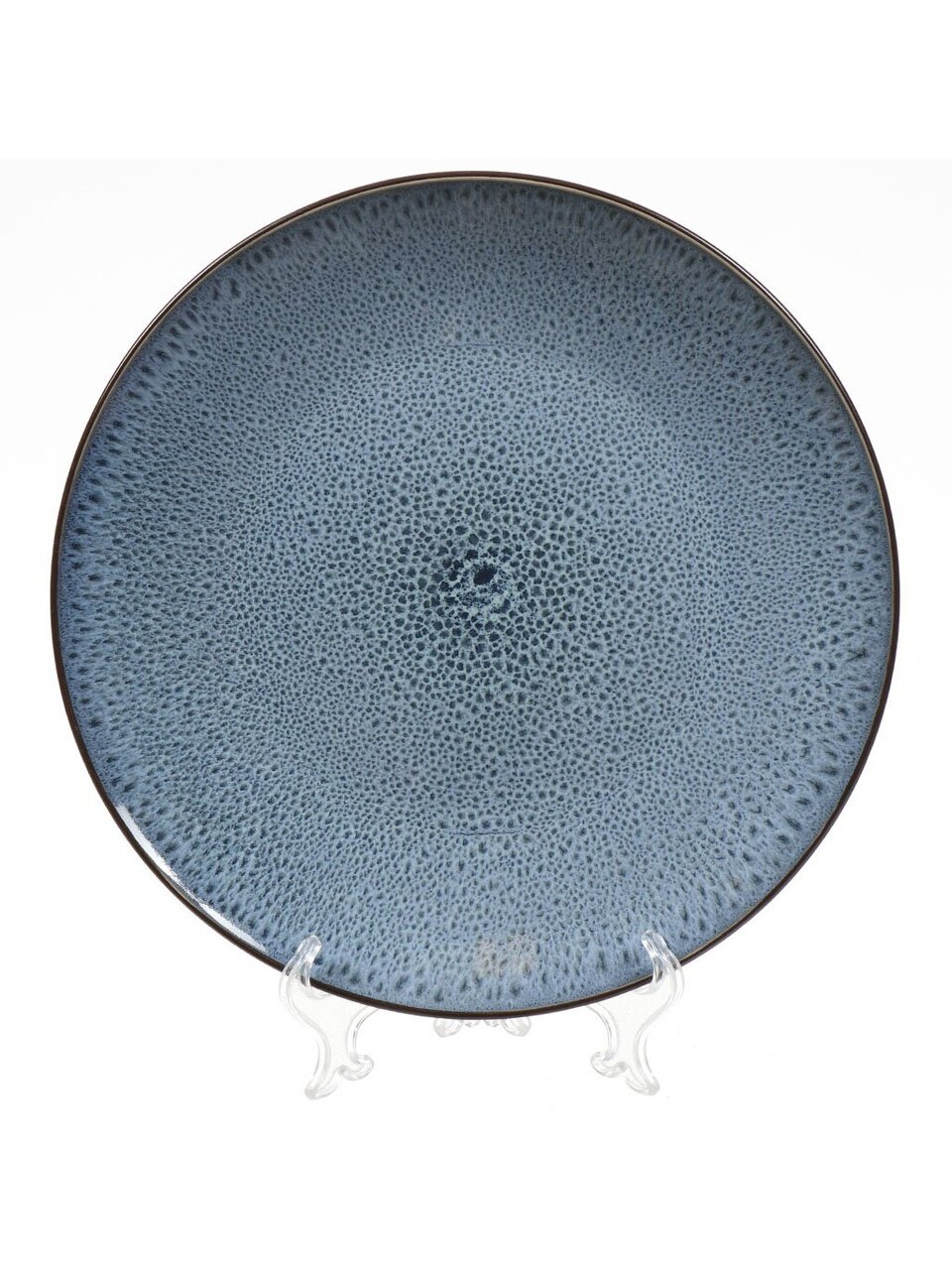 Диаметр — 27 см, форма — круглая, цвет — синий с крапинкой. Подходит для обеда, закусок, сервировки и ежедневного использования.