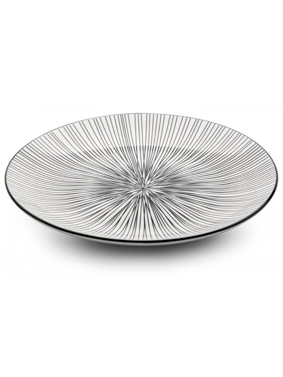 Обеденная тарелка Eclipse Apollo диаметром 27 см выполнена из прочного фарфора и отличается минималистичным черно-белым рисунком в полоску. Это универсальный вариант для сервировки, который гармонично впишется как в современный, так и в классический интерьер кухни или столовой. Благодаря оптимальному размеру и форме, тарелка подходит для подачи вторых блюд, закусок, салатов, а также для сервировки праздничного стола или повседневного использования.