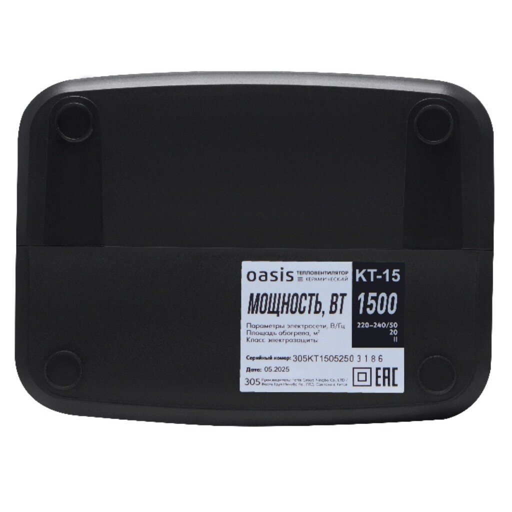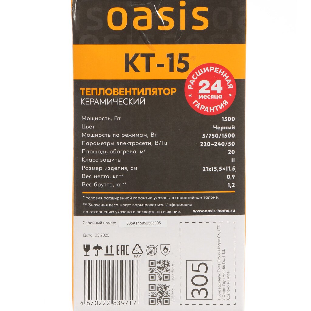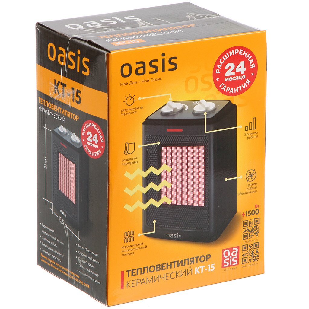 Тепловентилятор Oasis KT-15: быстрый обогрев 20 м², компактный размер, 3 режима, керамический элемент — для дома, дачи и офиса по выгодной цене.