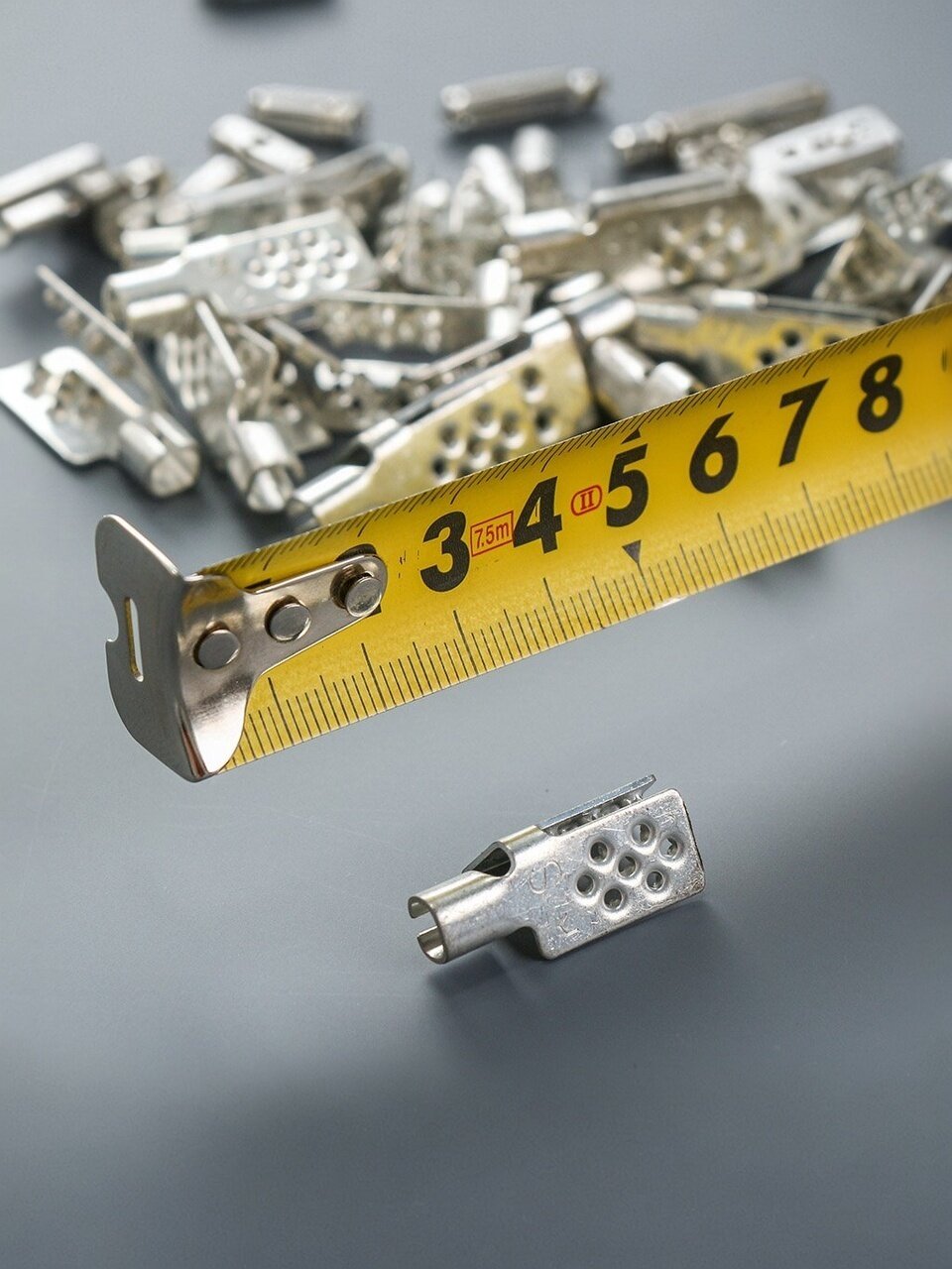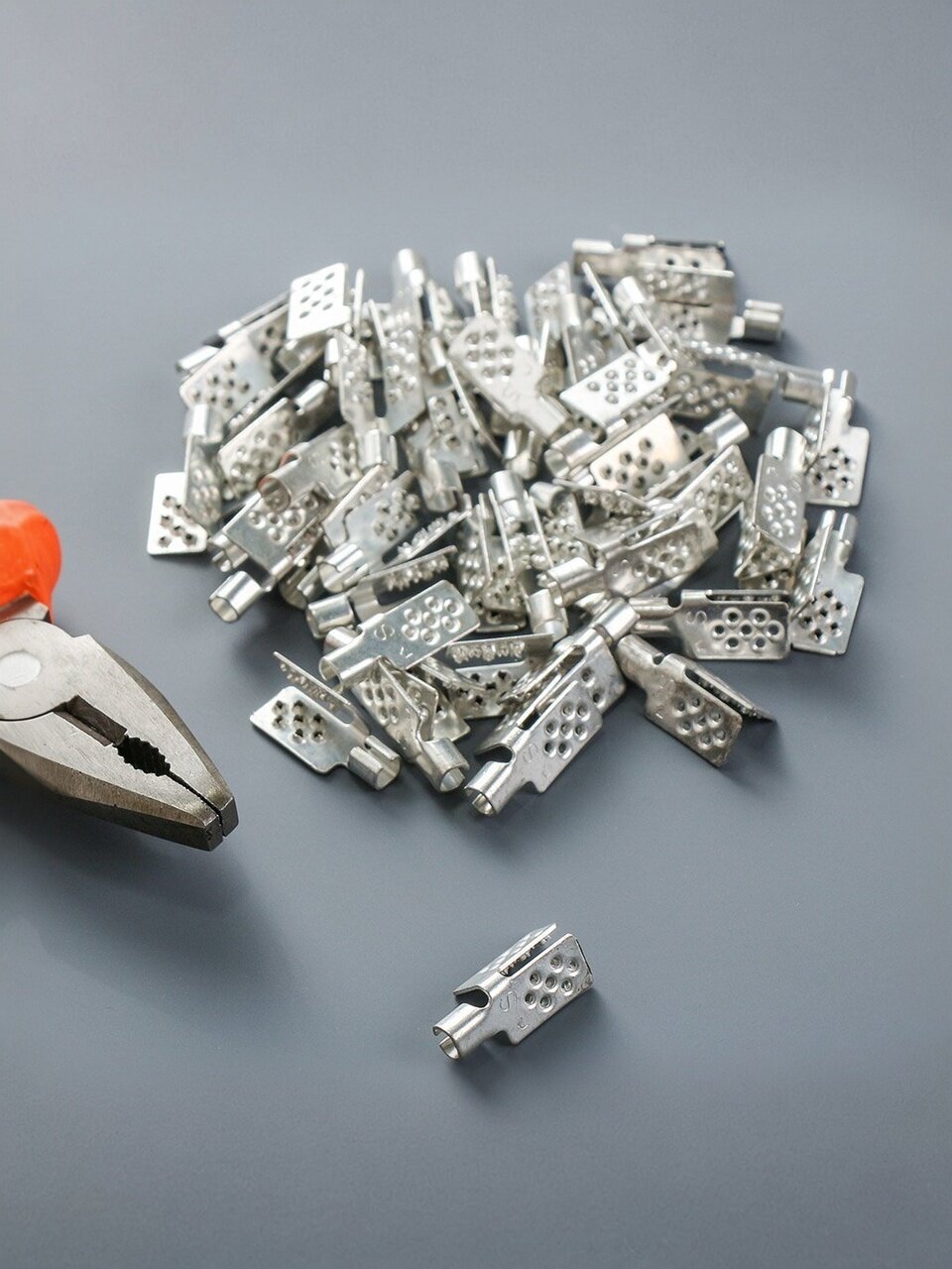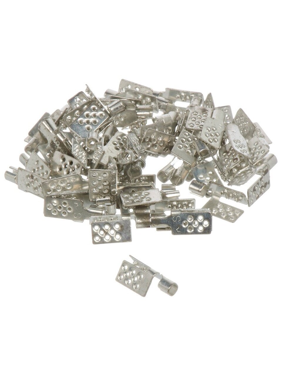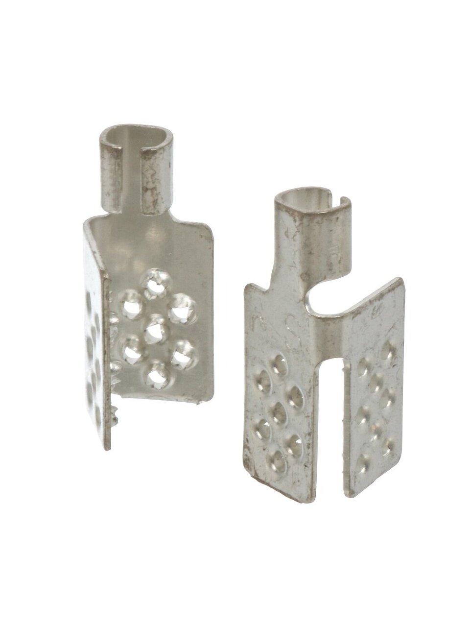 Зажимы серебристого цвета, выполнены из прочного металла, устойчивы к коррозии и рассчитаны на длительный срок службы.