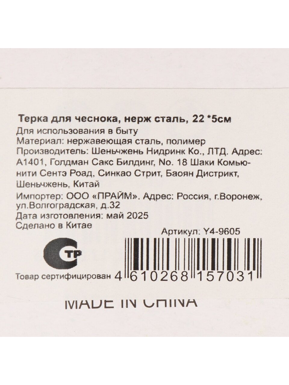Вы можете приобрести «Терка для чеснока, 22х5 см, нержавеющая сталь, Y4-9605» и другие товары в нашем интернет-магазине в Железногорске по низким ценам и с бесплатным самовывозом.