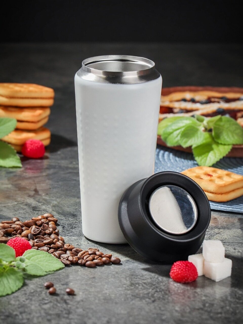 Термокружка Y4-7239 с белым корпусом из нержавеющей стали и пластика — оптимальный выбор для тех, кто ищет недорогую термокружку для города, дачи или автомобиля. Благодаря двойным стенкам напитки сохраняют температуру до 2 часов, а широкая горловина позволяет удобно наливать и пить даже густые коктейли. В отличие от обычных пластиковых кружек, здесь используется прочная нержавейка — она не впитывает запахи и не окрашивается.