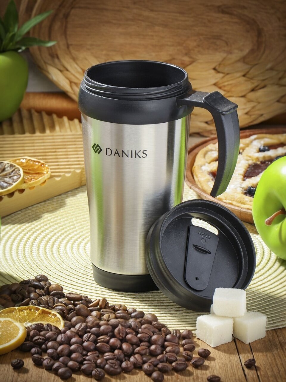 Термокружка Daniks 0.4 л: держит напитки горячими до 2 часов, корпус из нержавеющей стали, недорогой выбор для города, дома и автомобиля.