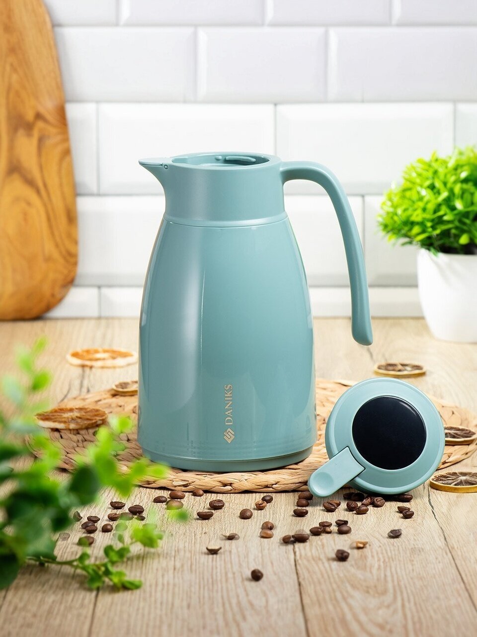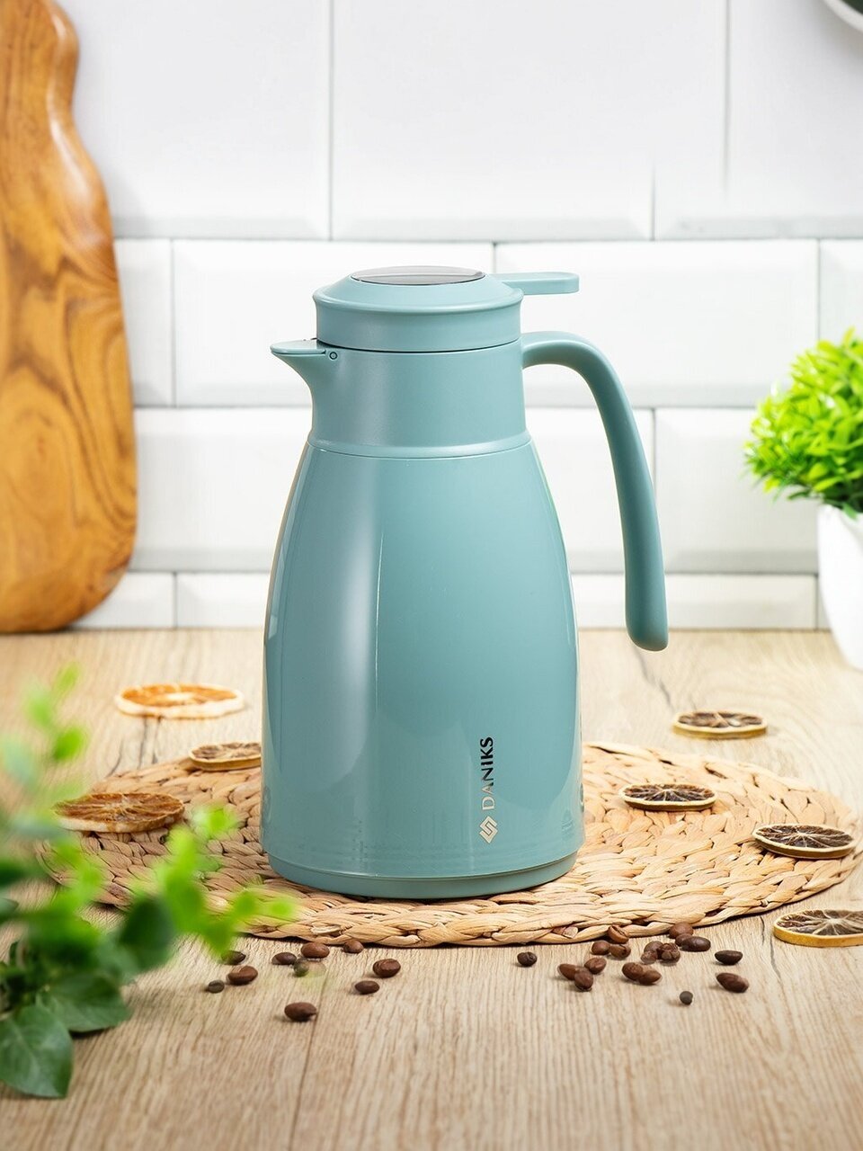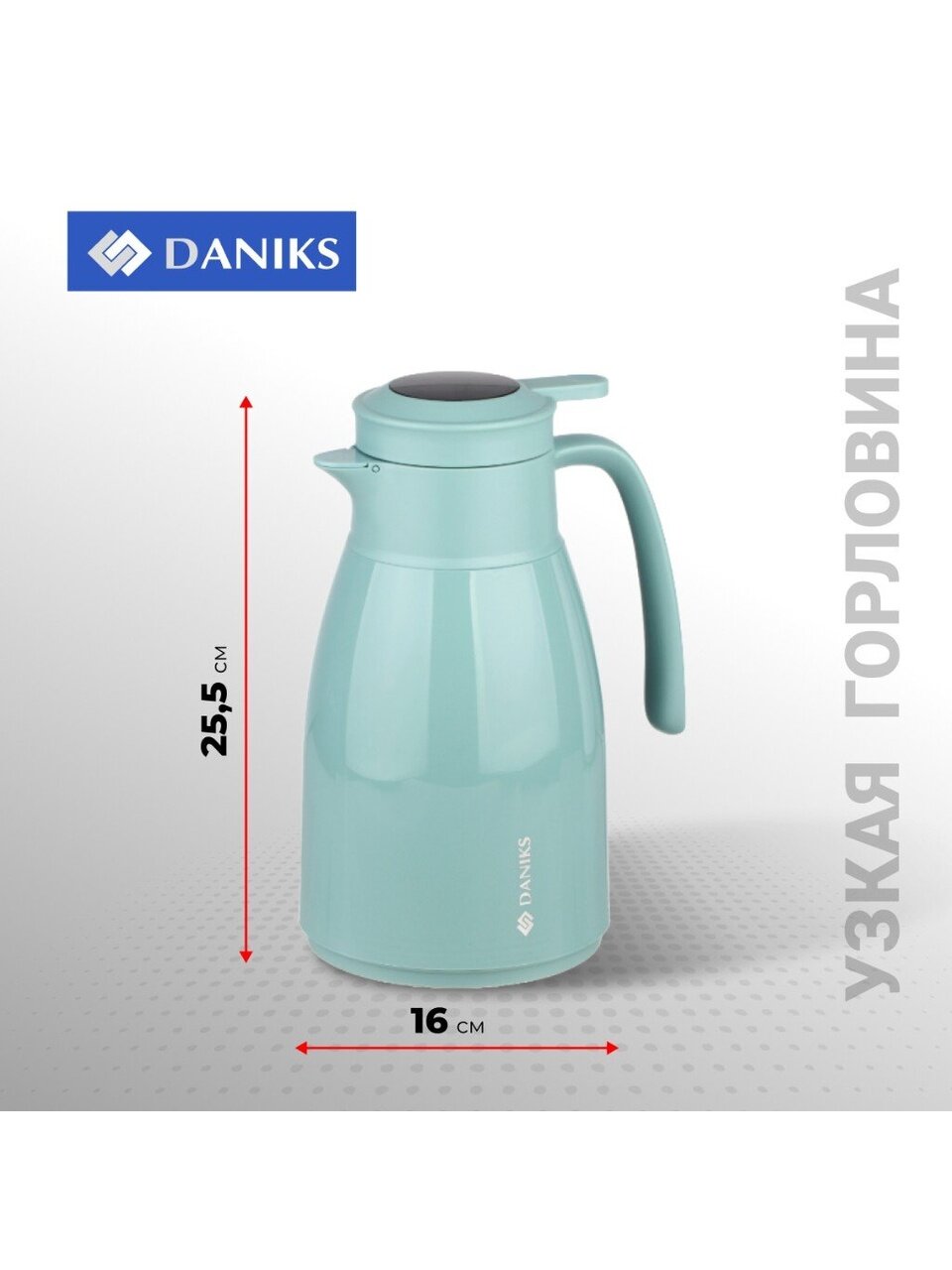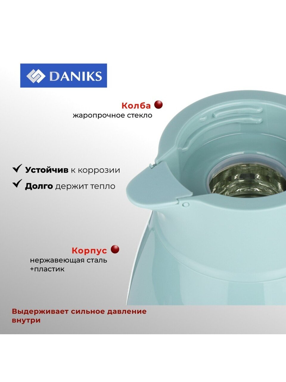 Daniks ED-100-blue с объёмом 1 литр, стеклянной колбой и датчиком температуры — оптимальный вариант для хранения чая, кофе или компота дома, на даче, в офисе или в дороге.