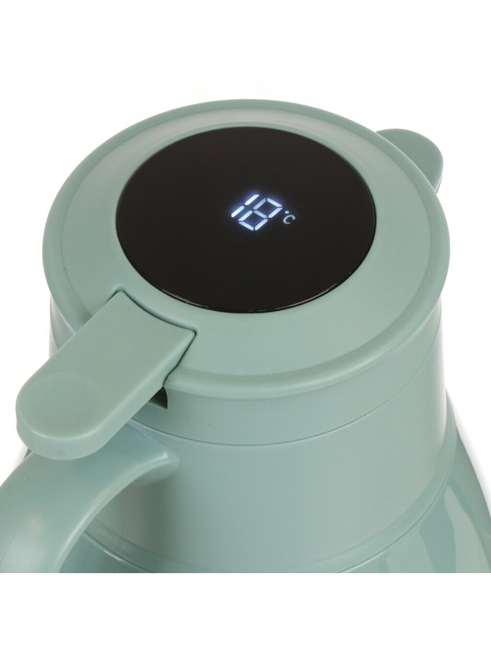 Если вы ищете, какой термос лучше выбрать для дома или дачи, обратите внимание на сочетание стеклянной колбы и пластика: напитки не приобретают посторонний вкус, а корпус не нагревается снаружи. В отличие от моделей без датчика, здесь вы всегда контролируете температуру — удобно для семей с детьми и активных пользователей.