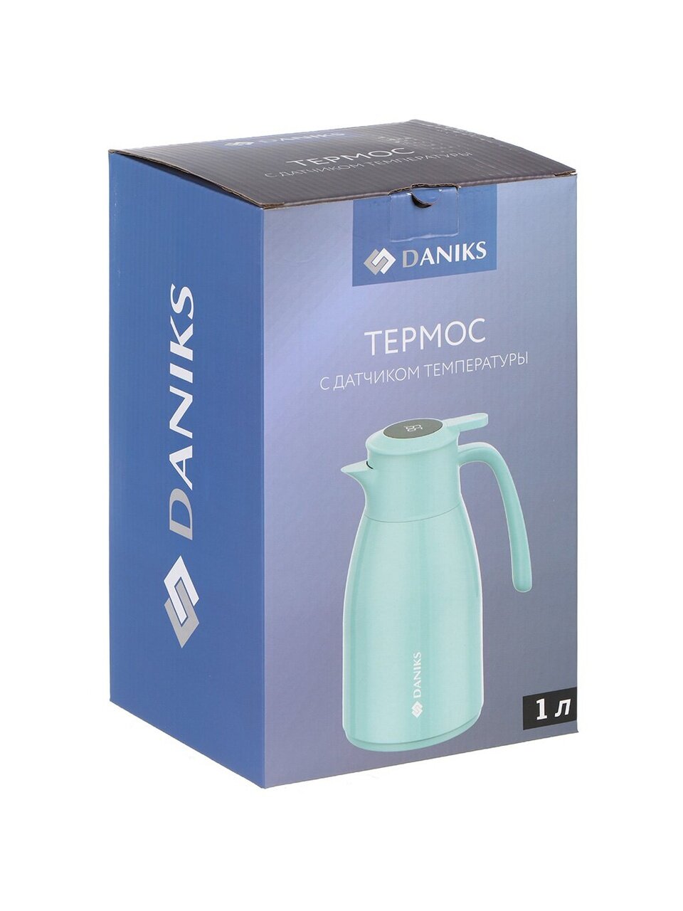 Термос-кувшин Daniks 1 л с датчиком: держит напитки горячими или холодными до 24 часов, не протекает, идеально для дома и в дорогу.