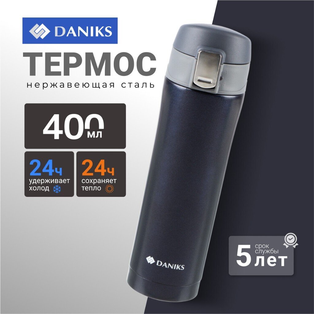 Термос Daniks станет надежным спутником в длительных поездках, на прогулках или во время путешествий. Конструкция термоса выполнена с применением долговечных материалов. Он позволяет сохранить температуру напитка на протяжении длительного времени, что очень удобно во время работы или занятий спортом.