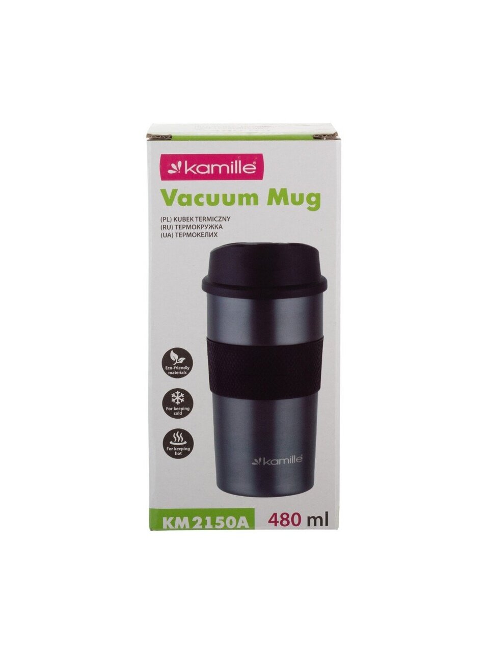 Термокружка Kamille 0.48 л из нержавеющей стали — стильное решение для города, авто и путешествий. Держит тепло/холод до 10 часов, не протекает, удобно брать с собой.