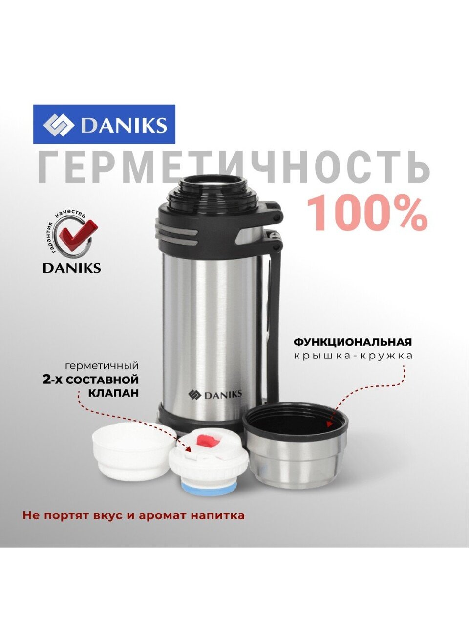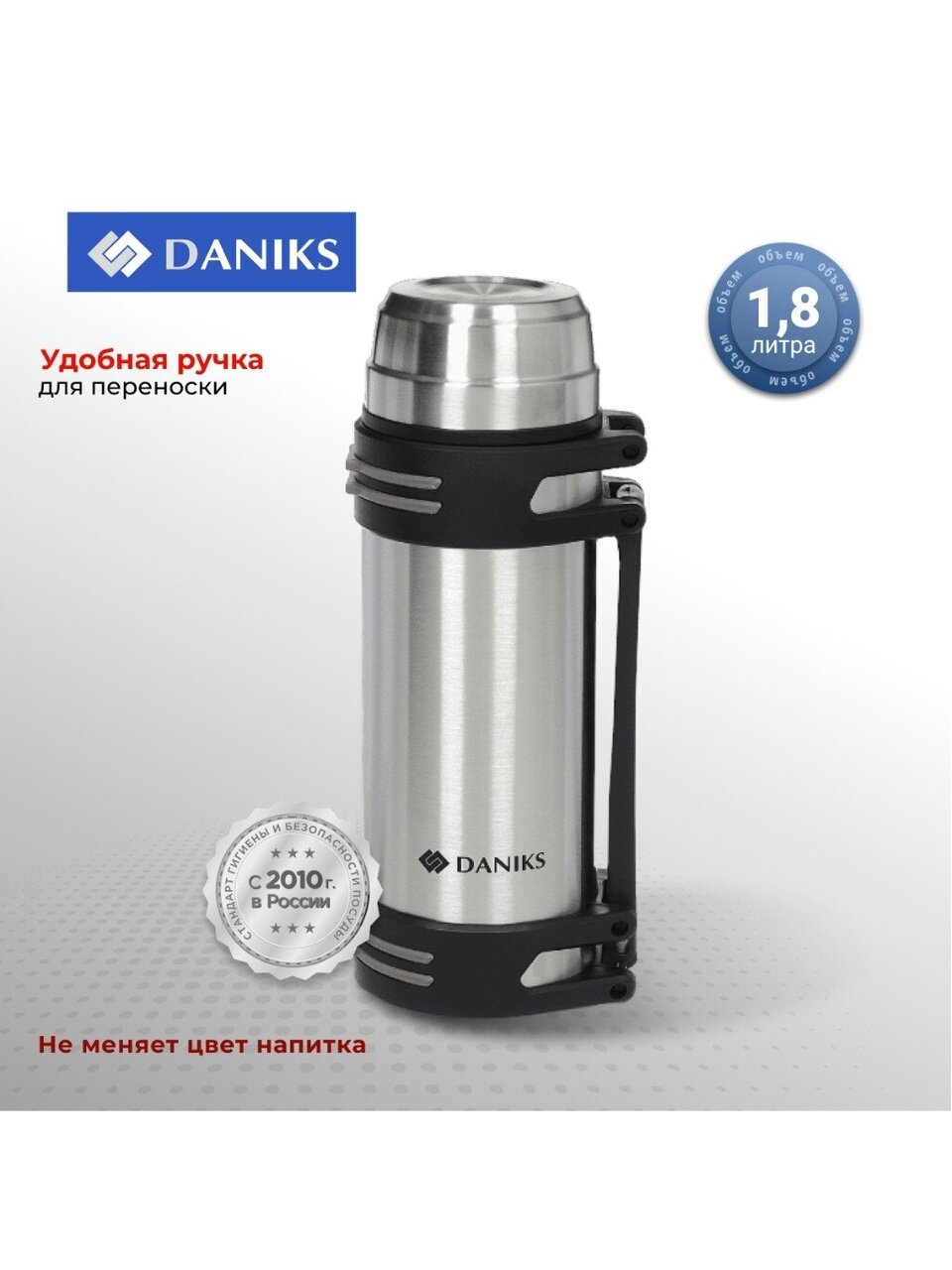 Термос Daniks 1.8 л — держит тепло и холод до 24 часов, универсальная горловина и ударопрочный корпус для любых условий. Идеальный выбор для дома, дачи, похода.
